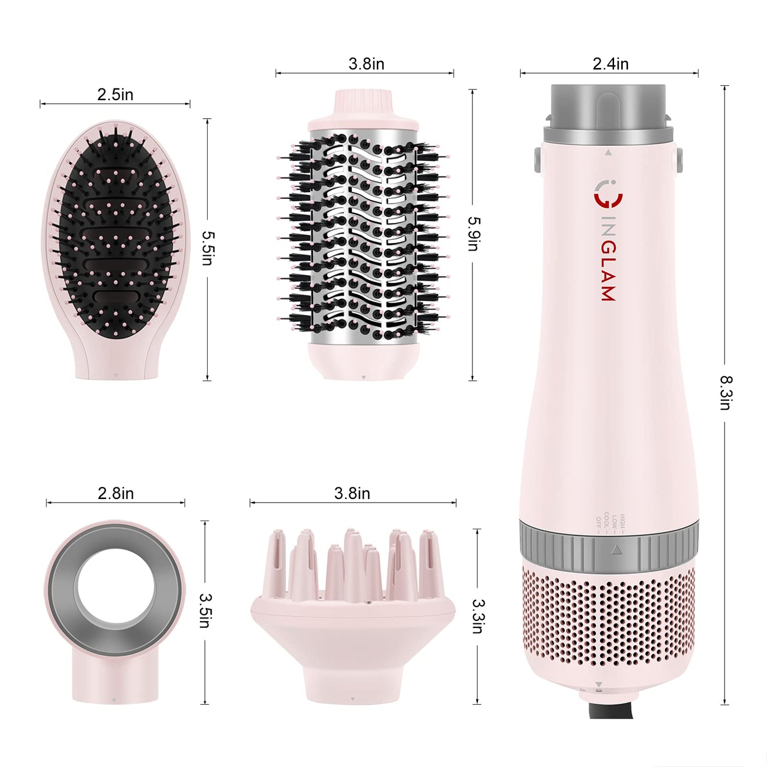 IG INGLAM 4 in 1 Blowout Hair Dryer Brush Set - Negative Ion Detachable Hair Dryer, Volumizer Styler with 2 Brush Heads, Pink
