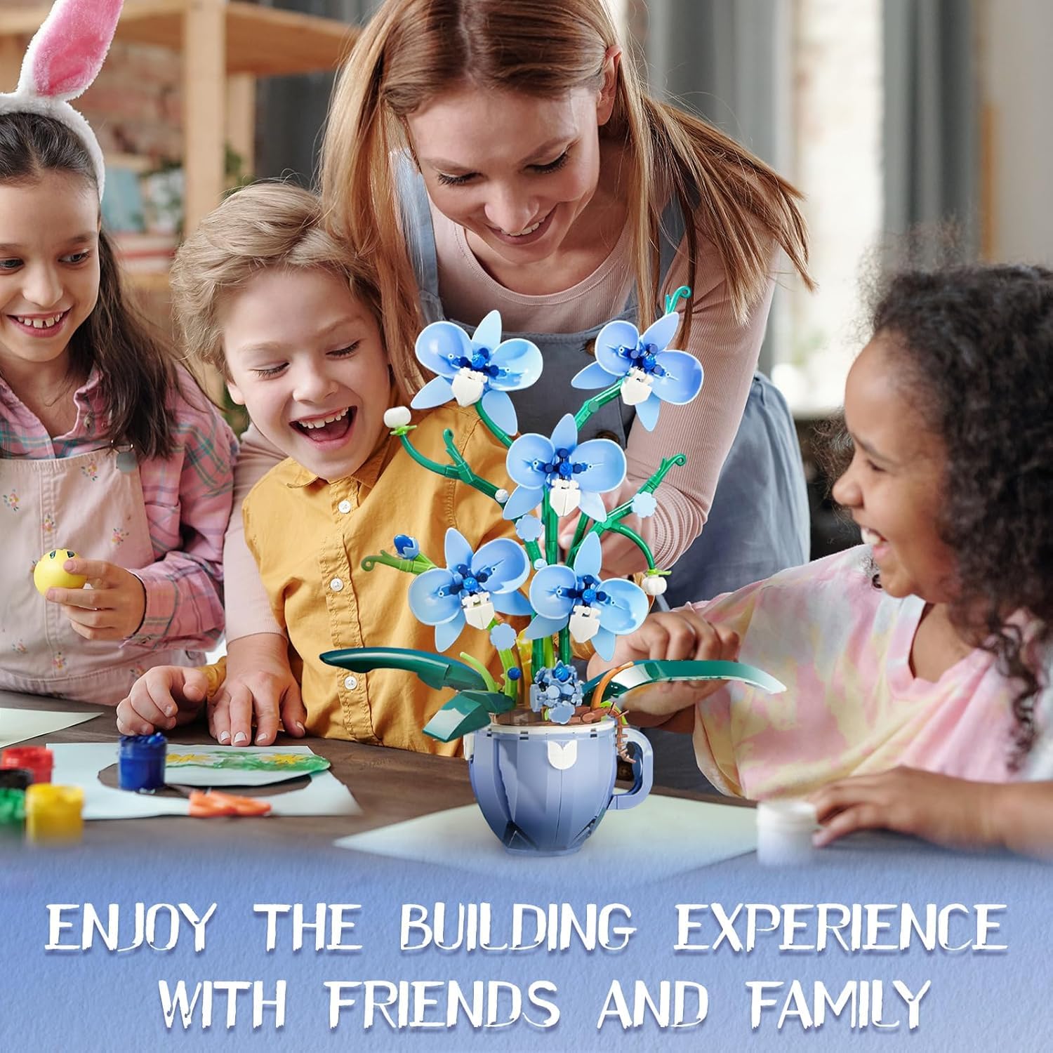 iixeal Blue Orchid Flower Building Set for Adults, Coffee Cup Orchid Botanical Collection Plant Building Kit, Home and Office Decor Gift for Christmas Day, Valentines, Birthday 567pcs