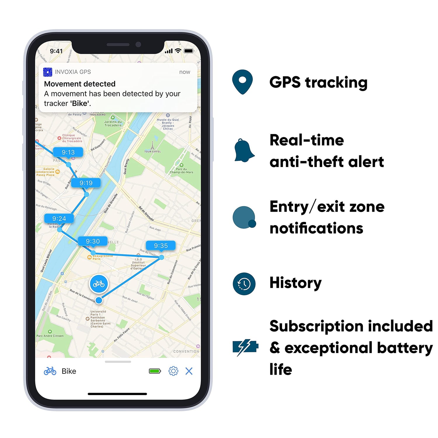 - Anti-theft alert: be notified in case of any suspicious movement. Set up alert zones and receive a notification as soon as the bike Enters and/or exits them