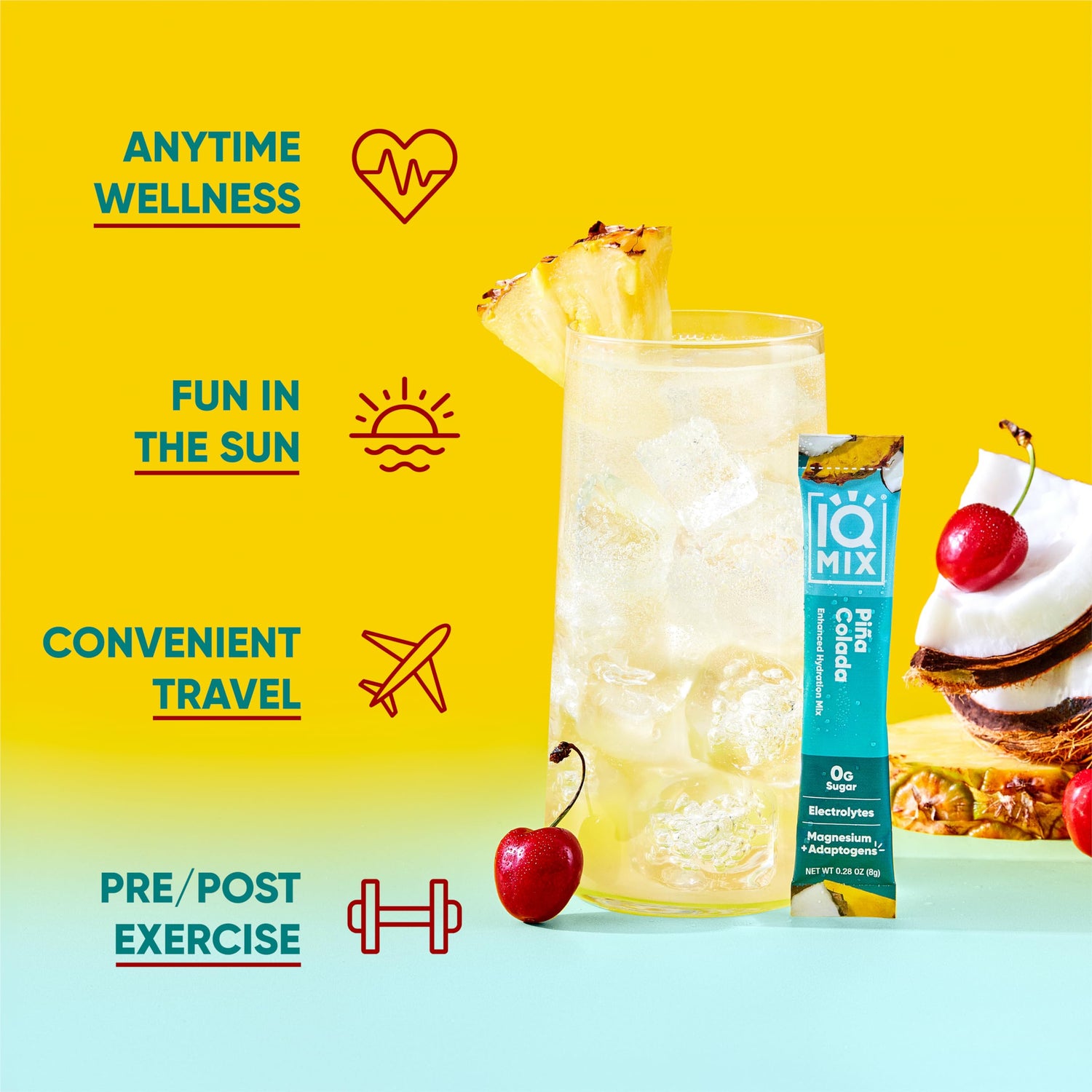 - ON-THE-GO HYDRATION: These amazing hydrate powder packets are perfect for anytime and anywhere. For best results, shake or stir IQMIX with 16oz of water until the drink mix packet is completely dissolved. The Lion’s Mane mushroom powder + Magnesium Tropical Drink pack transports you to paradise! Piña Colada captures the essence of the classic beachfront indulgence and Passion Fruit offers a vibrant burst of flavor