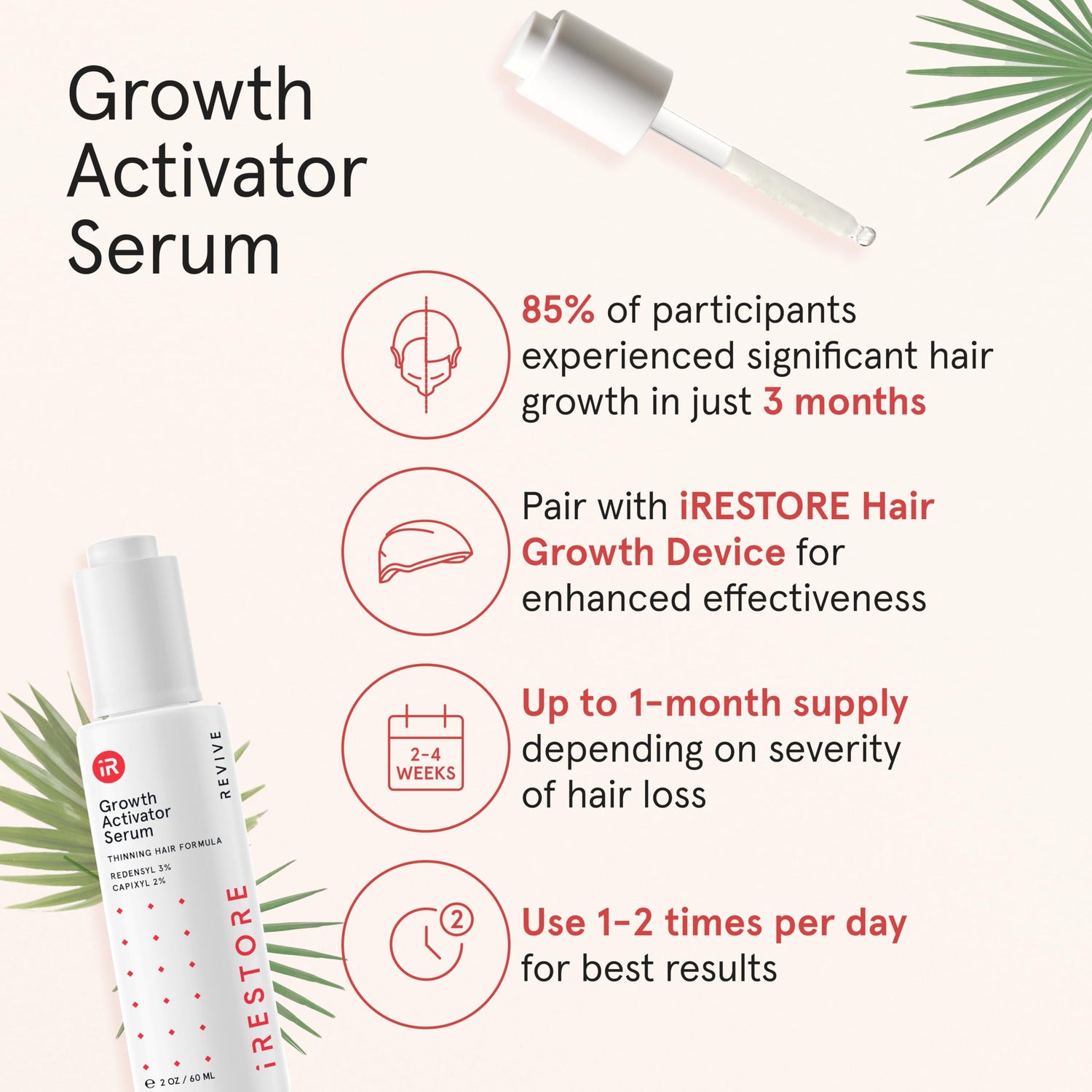 - PROVEN RESULTS: iRestore takes pride in helping countless people embark on their hair regrowth journey. Regain your confidence with our Growth Activator Serum that delivers visible results in as little as 8 weeks of consistent use