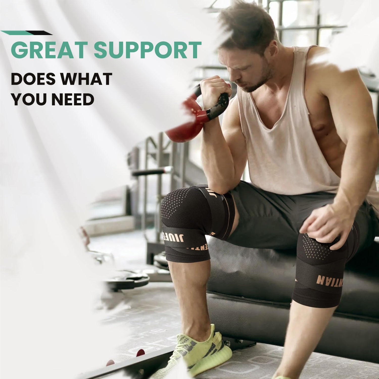 - The knee compression sleeve come with a strap to assist in securing them below the knee and adjusting the amount of compression. The sleeve can also be worn alone with the straps removed, and the sticky hooks are covered with a protective fabric to prevent damage to your clothing