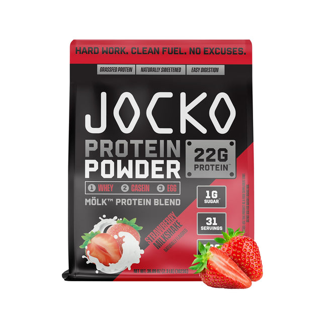 Jocko Fuel Mölk Whey Protein Powder 22g Low Sugar Monk Fruit Blend - Muscle Recovery & Growth, Packaging May Vary (31 Servings, Strawberry Milkshake)