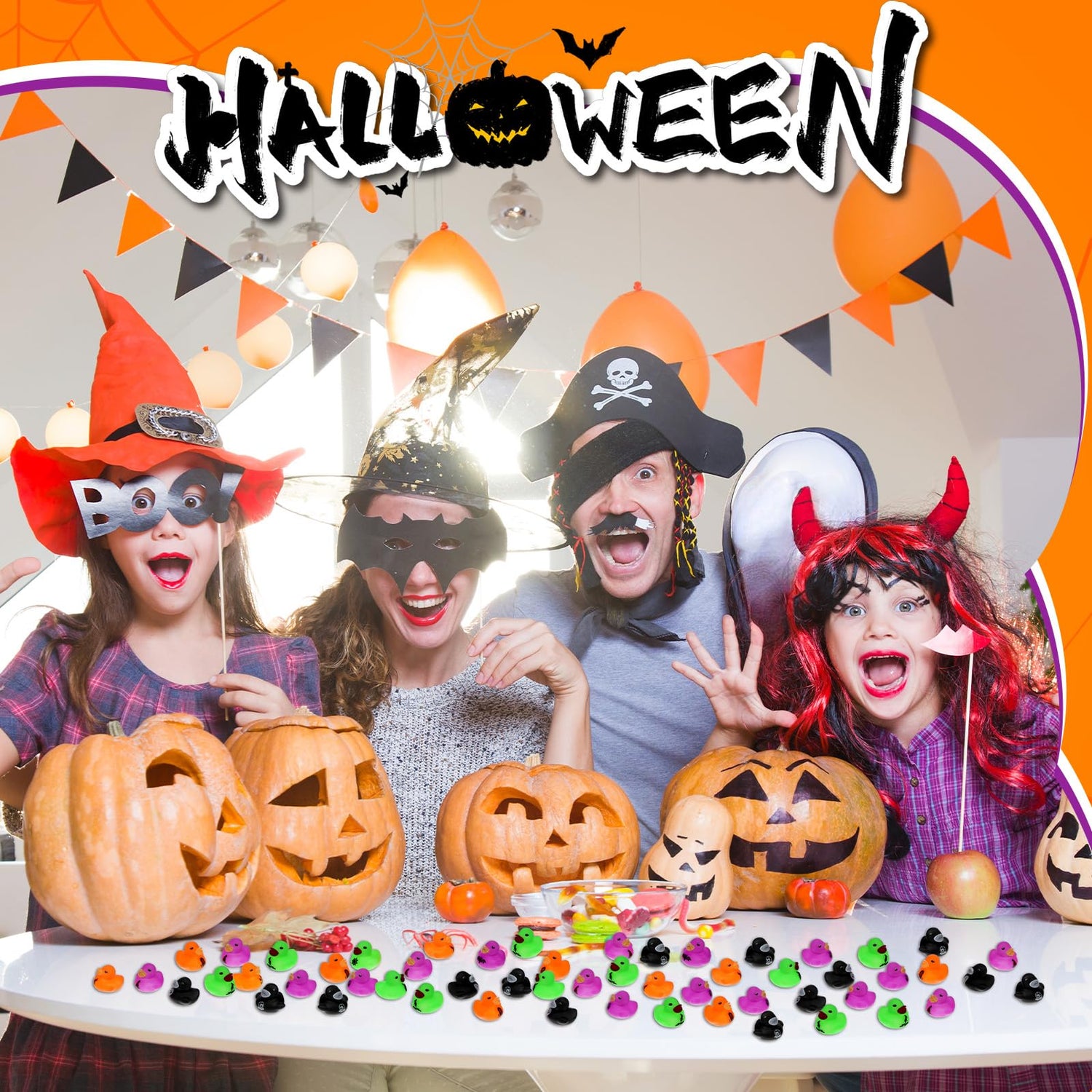 Junkin 100 Pcs Halloween Rubber Ducks Bulk Mini Rubber Ducks Small Duck in Bulk Gift for Halloweens Party Favors Toys (Halloween Duck)