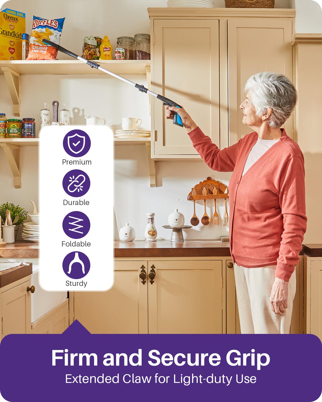 - Foldable and Compact: Featuring an ingenious folding mechanism that folds to less than 12 inches in length, Kekoy grabber tool is compact and foldable for easy storage, whether you place it in a cabinet, a walker bag, or strap it to a walker or wheelchair with the included strap. Made of lightweight but strong aluminum alloy and weighing only 10 ounces, It can reduce fatigue when used for long periods or on the go