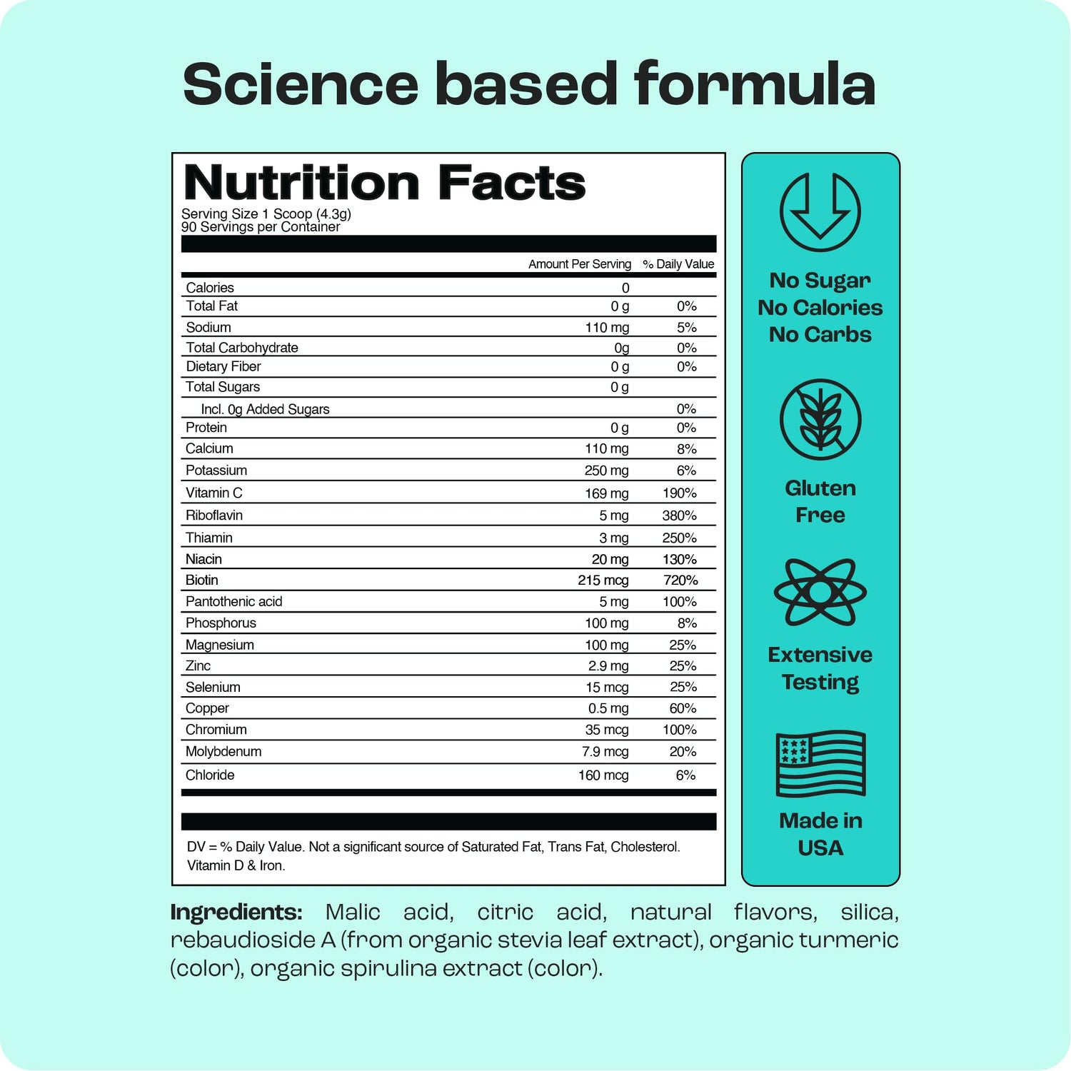- Loaded with Key Nutrients - Refuel with our lemonade electrolyte powder, powered by 6 key electrolytes, including magnesium, potassium sorbate, and calcium. Our electrolytes powder also contain 12 vitamins to help you stay healthy and hydrated.