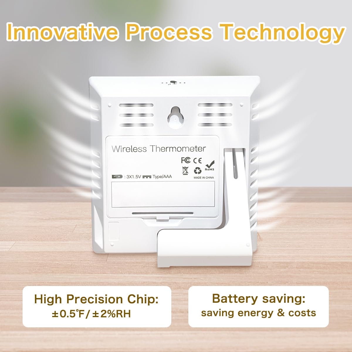 - Enhanced Signal Technology, 330ft Ultra-long Distance & Stable Connection-- through continuous experiments and tests, a longer-distance and more stable wireless connection technology than ordinary outdoor thermometers has been developed, allowing you to obtain multi-directional weather conditions more easily.