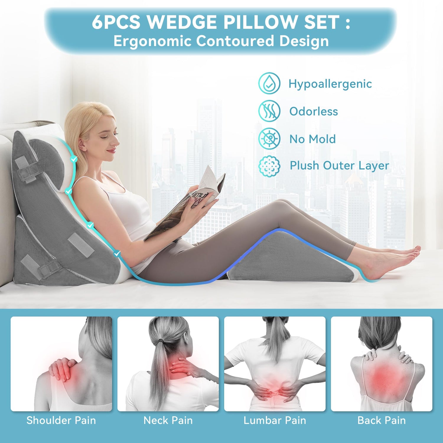 - SOFT AND SUPPORTIVE MEMORY FOAM: All wedge pillows feature high density and better rebound memory foam, which can better fit your body curve and offer full support to your body so that reduces tossing and turning when you sleep. The memory foam wedge pillow wouldn't be flattened and keep its shape after long-term use.