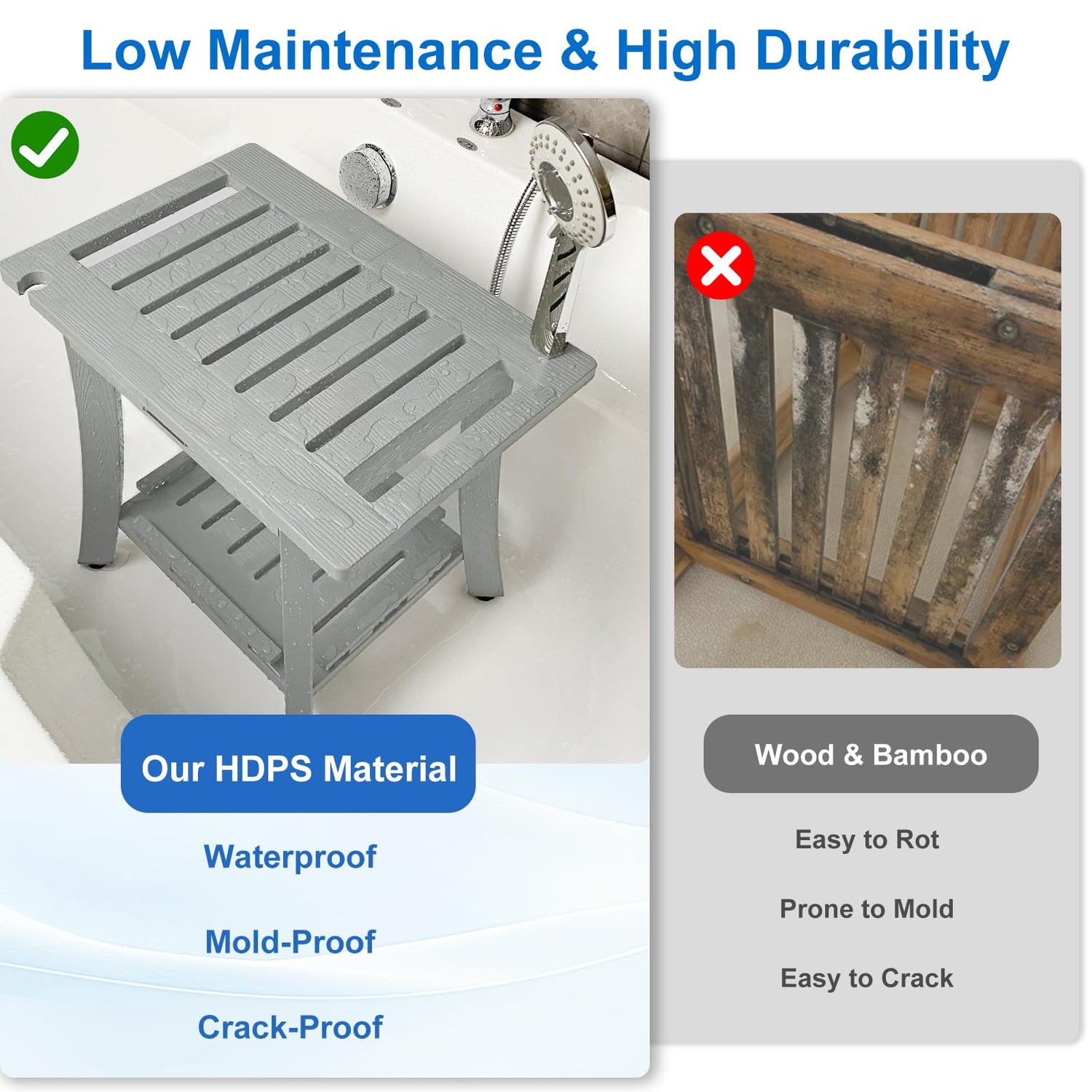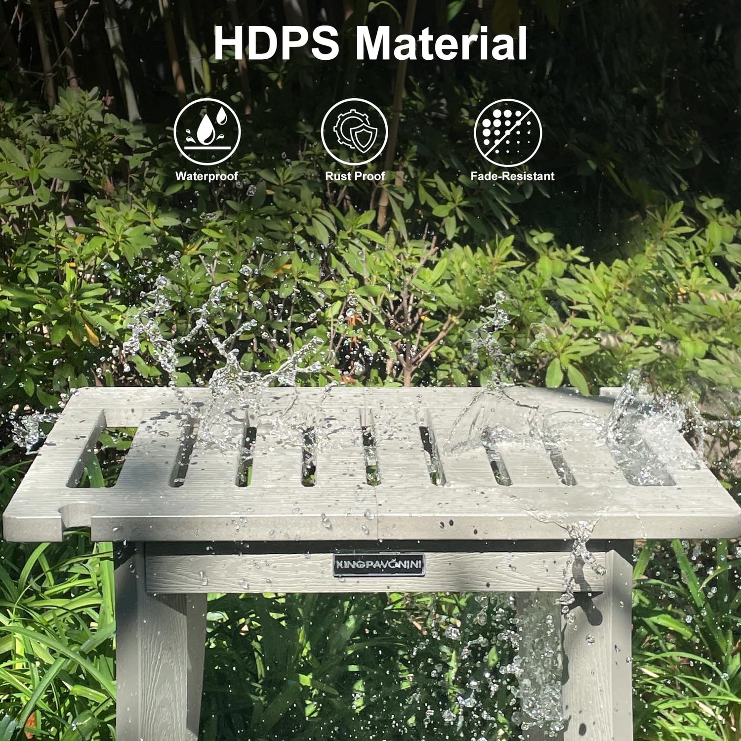 - Waterproof & Durability of HDPS: The Kingpavonini shower bench features 100% high-quality HDPS, a material that combines the look of natural wood with enhanced durability. Resistant to water, weather, scratches, and stains, HDPS offers superior performance over traditional wood. It is low maintenance and easy to clean