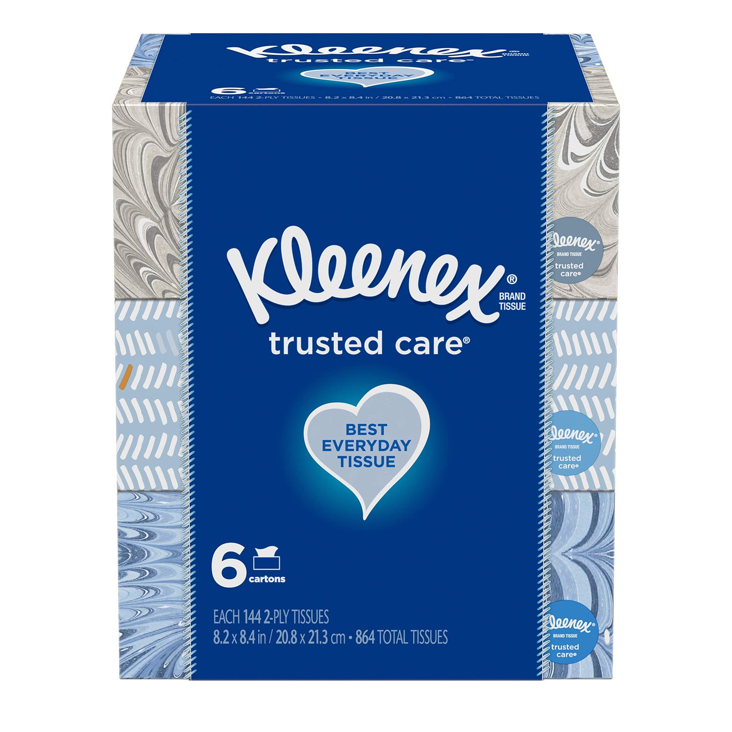 - Contains 6 rectangular tissue boxes with 144 Kleenex Trusted Care Everyday tissues per box = 864 tissues total