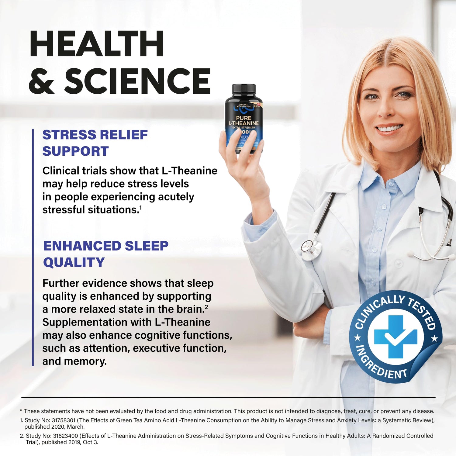 - L Theanine Supplement — Don’t stress & do your best! Sleep well with l theanine 400mg! Provides calming & relaxing effect on the body, supports good sleep, and the ability to deal with stress.