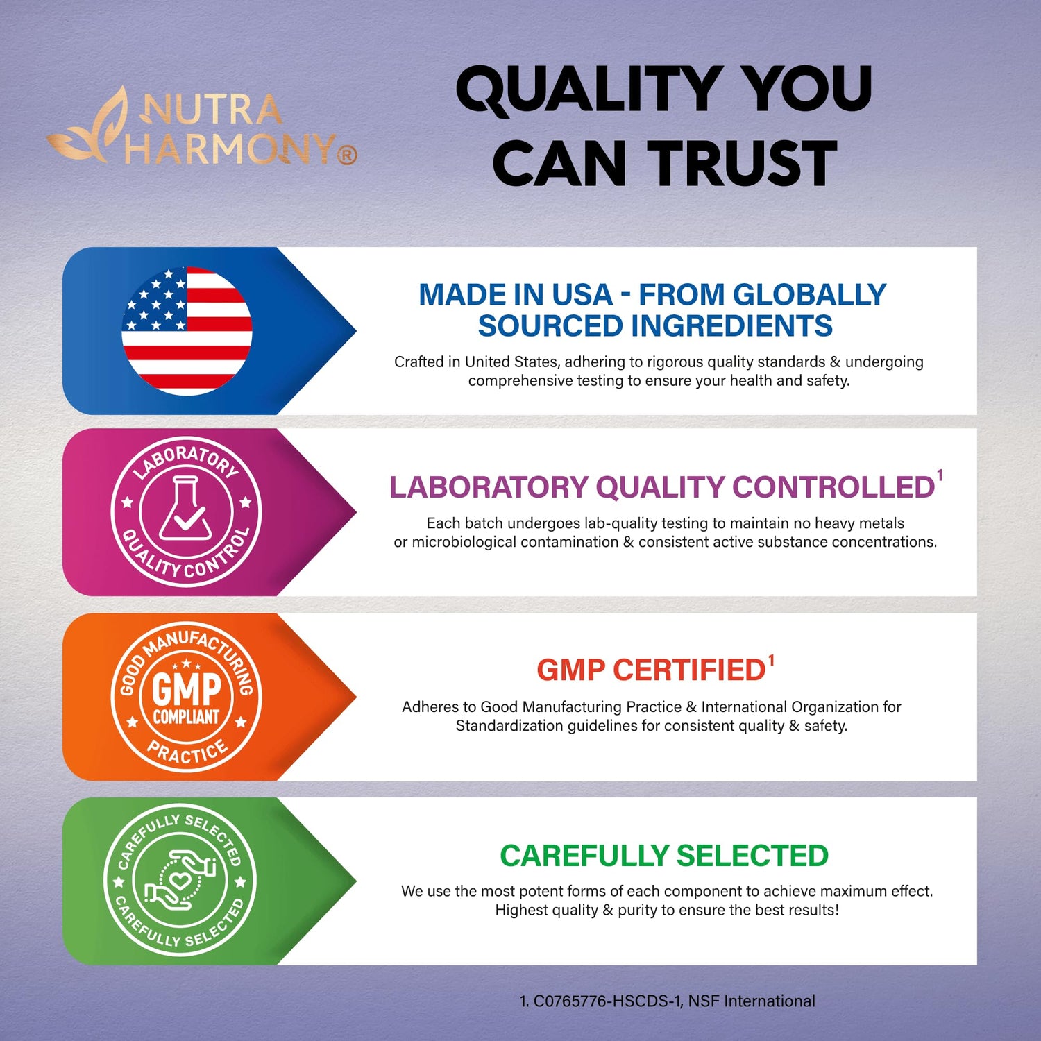 - Quality Matters — NUTRAHARMONY ltheanine vitamin is an excellent and effortless choice for improving your health. If you want to share your experience or have questions about l- theanine, message us. Our support team works 24/7. Maintain your health anytime, anywhere with a ltheanine supplement!