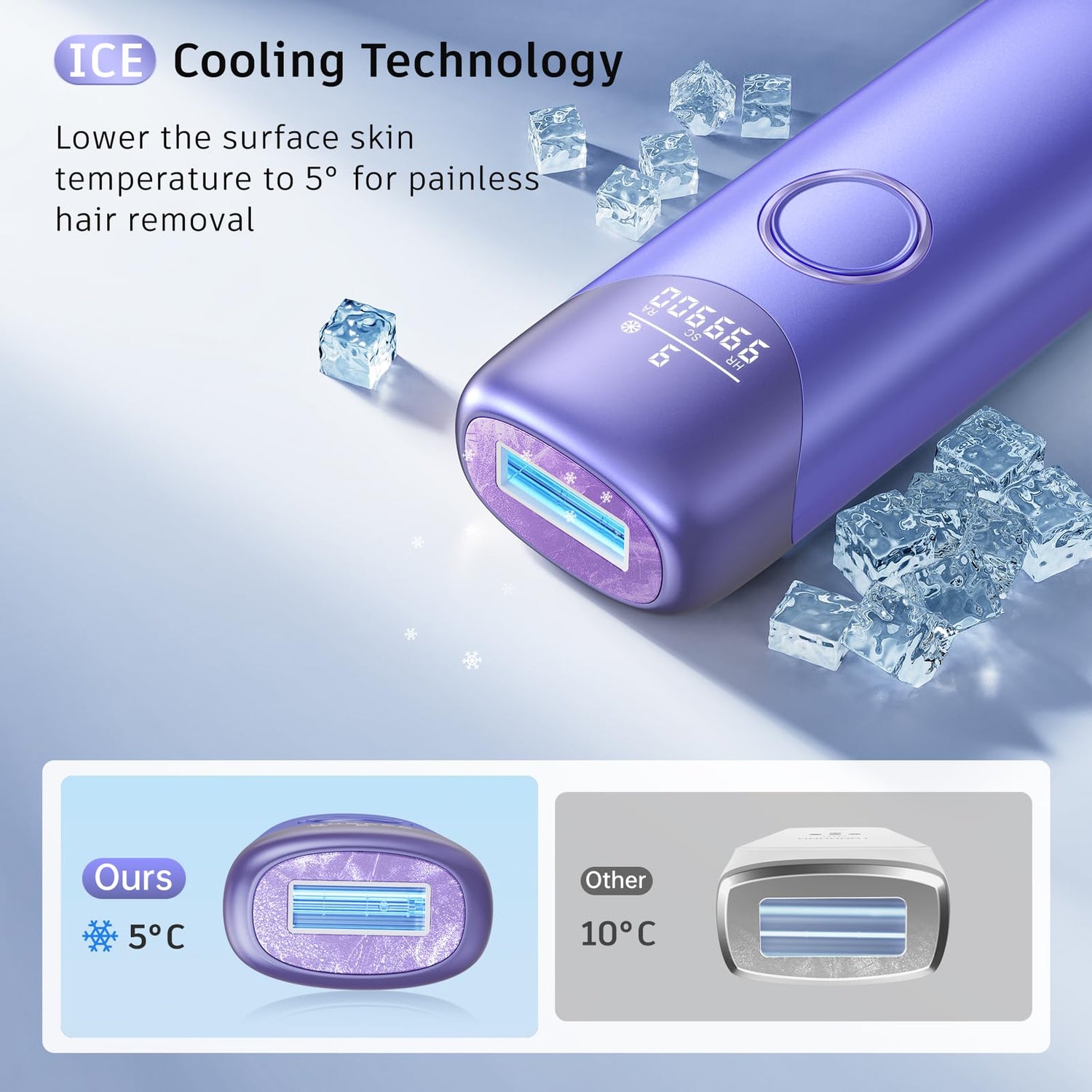 Laser Hair Removal with 5℃ Ice Cooling, Painless IPL Laser Hair Removal Device 3 In 1 Ubroo At Home Hair Remover Machine for Women Men Electrolysis Permanent Epilator on Face Body Depilation (Purple)
