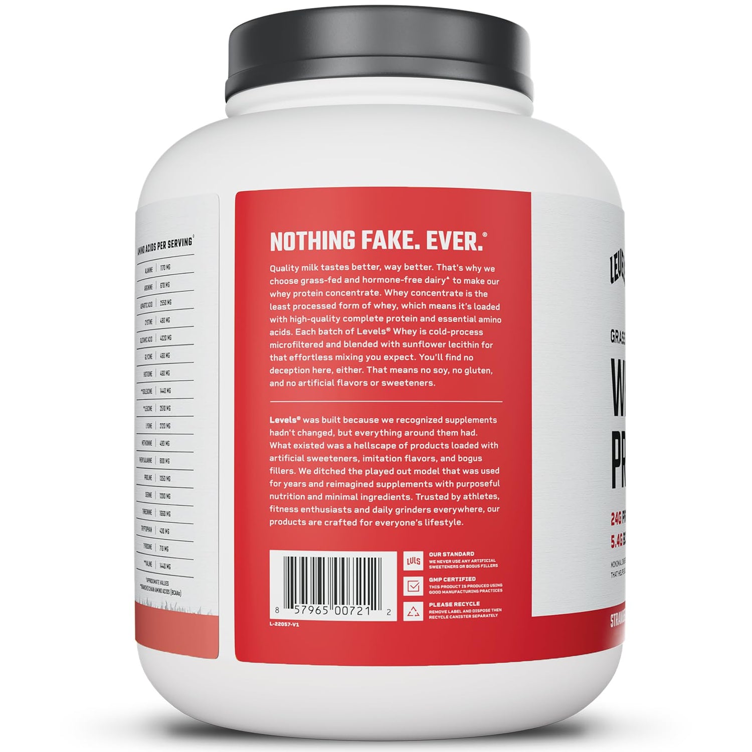 - NOTHING FAKE: Levels Whey is naturally delicious. That means no hormones, no GMOs, no added sugars, no soy, no gluten, no bleach, no fillers, and no artificial flavors or sweeteners.