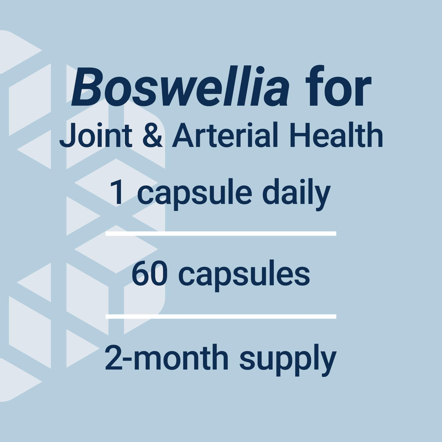 - Better-absorbed Boswellia – We use a standardized form of Boswellia. It absorbs better than unstandardized Boswellia extracts. Each capsule provides 100 mg of this innovative extract.