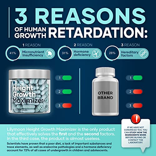 - Grow Tall Naturally - The World's famous scientists state that the main reason for growth speed reduction is a lack of vital nutrients like Vitamin D, Calcium, Spinach, Creatine, Zinc, L-Ornithine & l-Glutamine. Lilymoon growth pills for teens have them all and even more. With a daily intake, your kid will reach a peak height potential in the shortest time possible.
