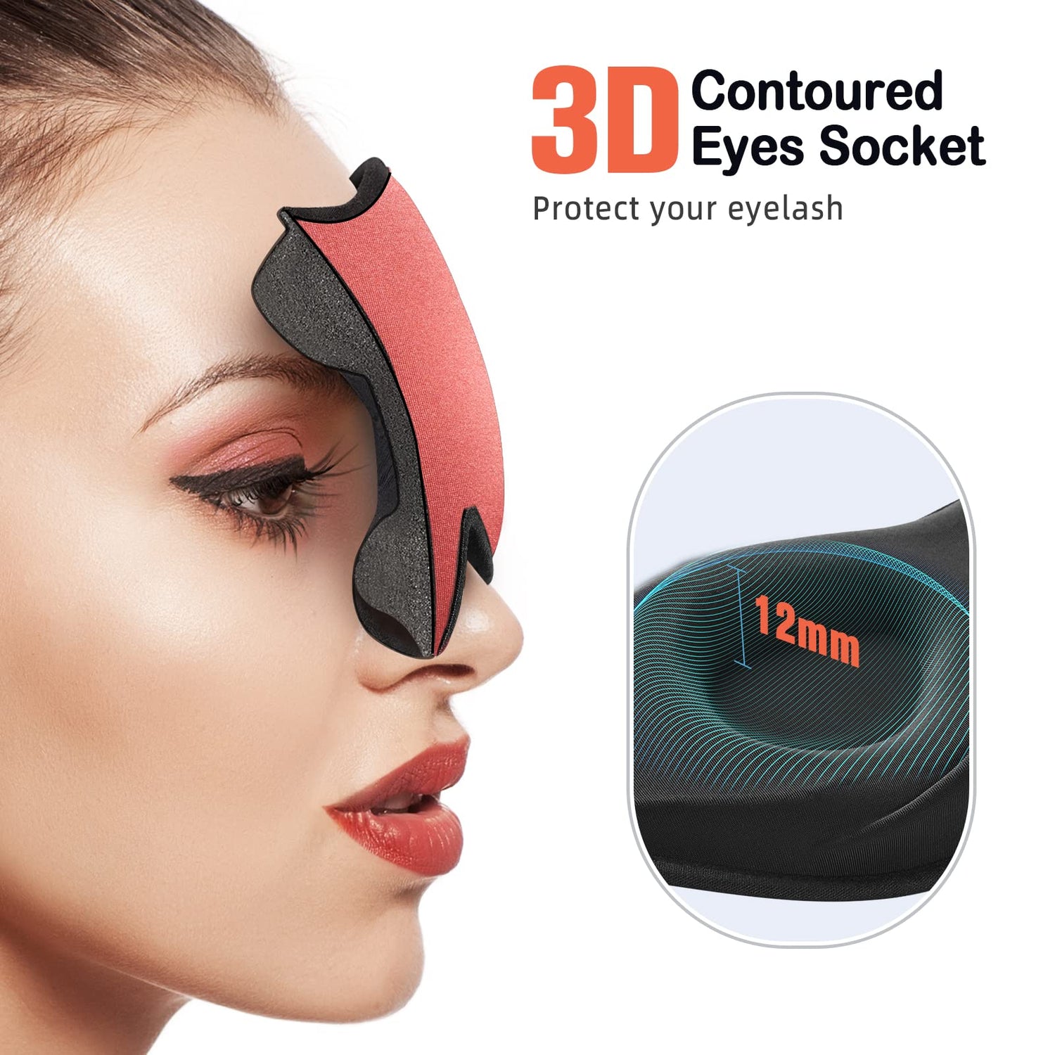 - No Pressure on Eyes: 12 mm depth 3D contoured eye cups leave plenty of room for blinking. Protect your eyelash extensions and maintain your eye makeup