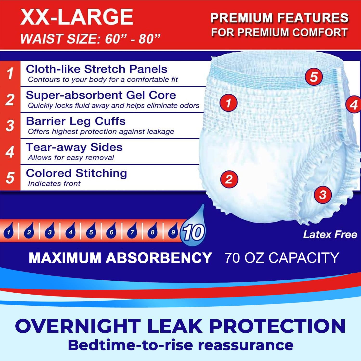 - ✔ LEAKAGE BARRIER CUFF HELPS FOR SOUND SLEEPING - These nighttime incontinence underwear for men and women have extra absorbency power, as well as a special leak-barrier leg cuff with gathered bands to guard against leaks while in bed.