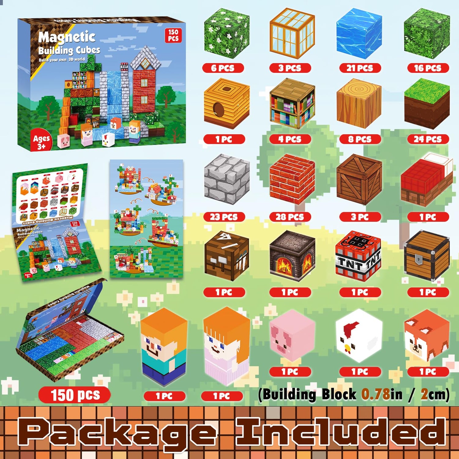 Details: Magnetic Blocks-150PCS Grassland Magnetic Building Blocks Set, Kids Classroom Sensory Toy for Toddlers STEM Learning, Construction Stacking Toy for Kids 3+ Boys and Girls Christmas Birthday Gifts Toys