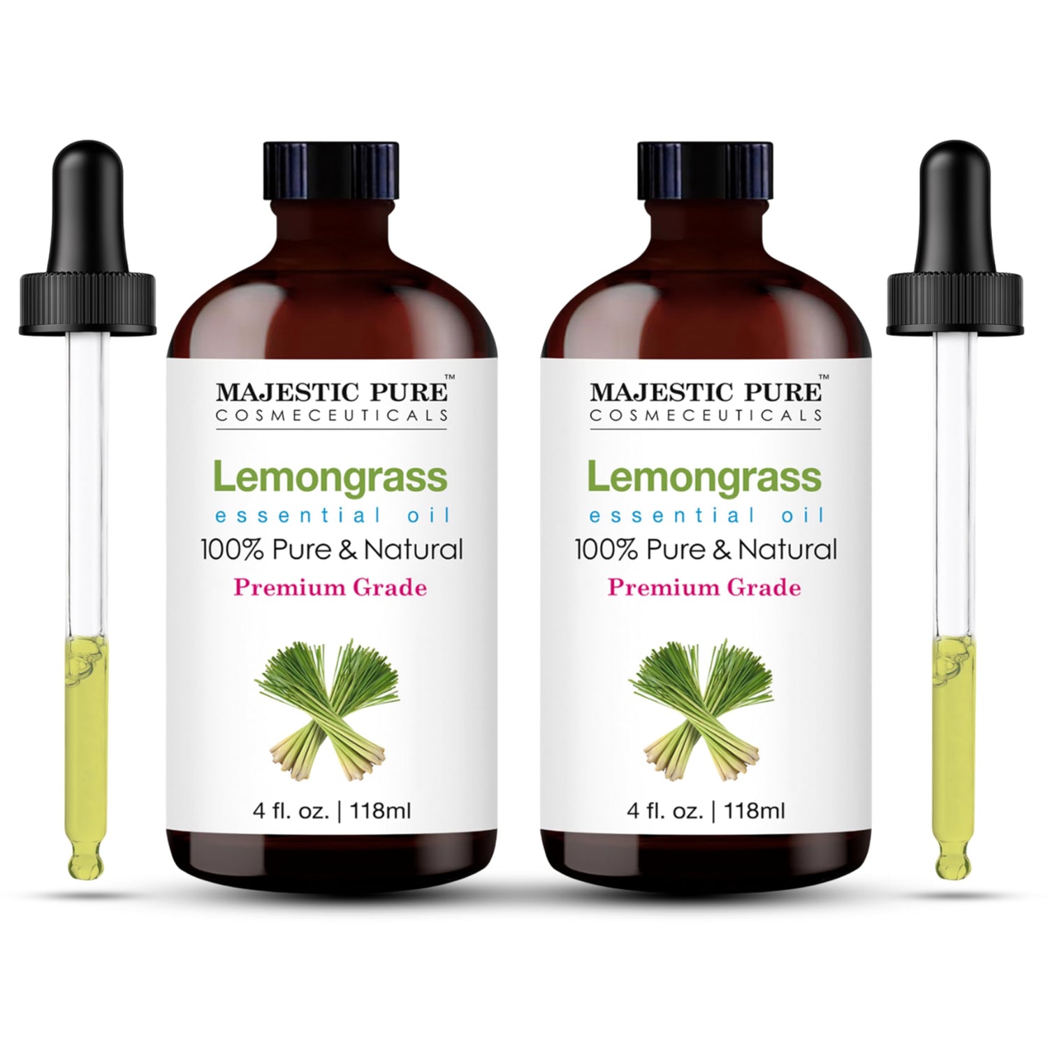 MAJESTIC PURE Lemongrass Essential Oil | 100% Pure and Natural Oil | Premium Grade Essential Oils for Hair Care, Home Diffusers, Skin, Aromatherapy, Massage and Humidifiers | 4 Fl Oz (Pack of 2)