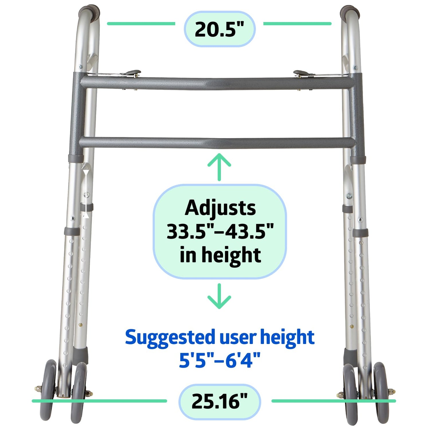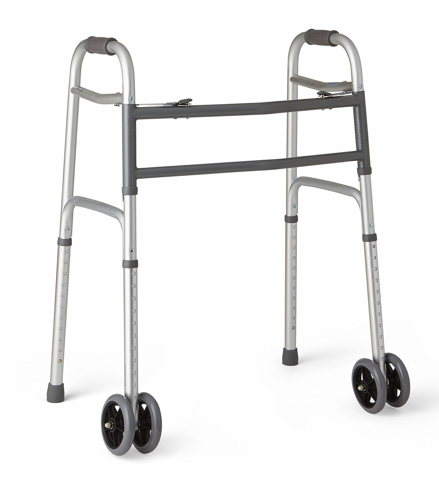 - EASY-FOLD DESIGN: Walker weighs 11 lbs. with 2-button mechanism that makes it easy to fold flat for convenient storage or travel