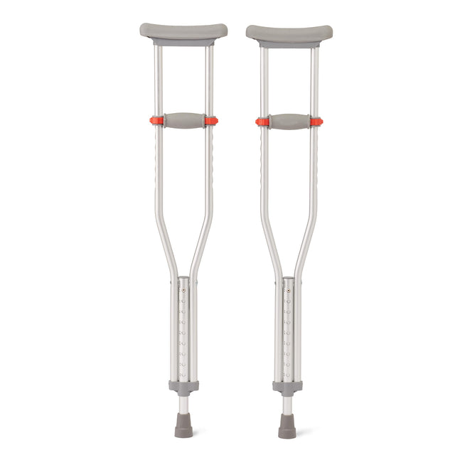 Medline Lightweight Aluminum Red Dot Crutches, for Patients 4’6”–5’2” Tall, Walking Aid for Kids, Adults & Seniors, 300 lbs. Weight Capacity