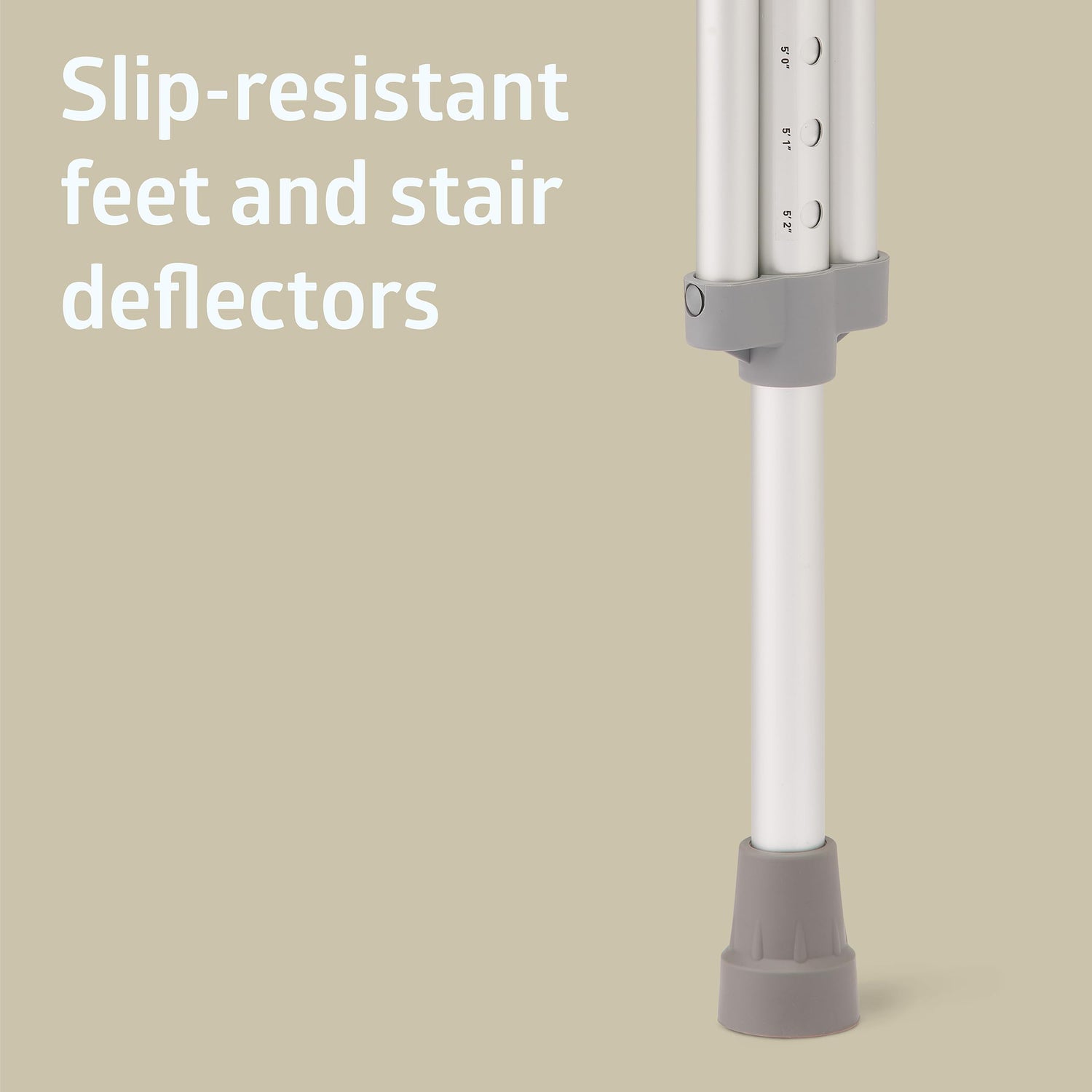 Details: Recovery isn’t a one-size-fits-all process. That’s why Medline’s Red Dot crutches adjust to create a custom, comfortable fit. What makes these crutches unique is the Red Dot handgrips, which use clip-locks to slide along each crutch’s aluminum bars to fit firmly in the user’s hands. Adjust the overall length of the crutch using pushbutton pins to select a snug, supportive fit that won’t strain the user’s armpits. Slip-resistant rubber feet with stair deflectors provide excellent traction and peace of mind when you’re out and about or going about everyday life at home. Suitable for people 4'6"–5'2" tall, these sturdy crutches easily support up to 300 lbs.