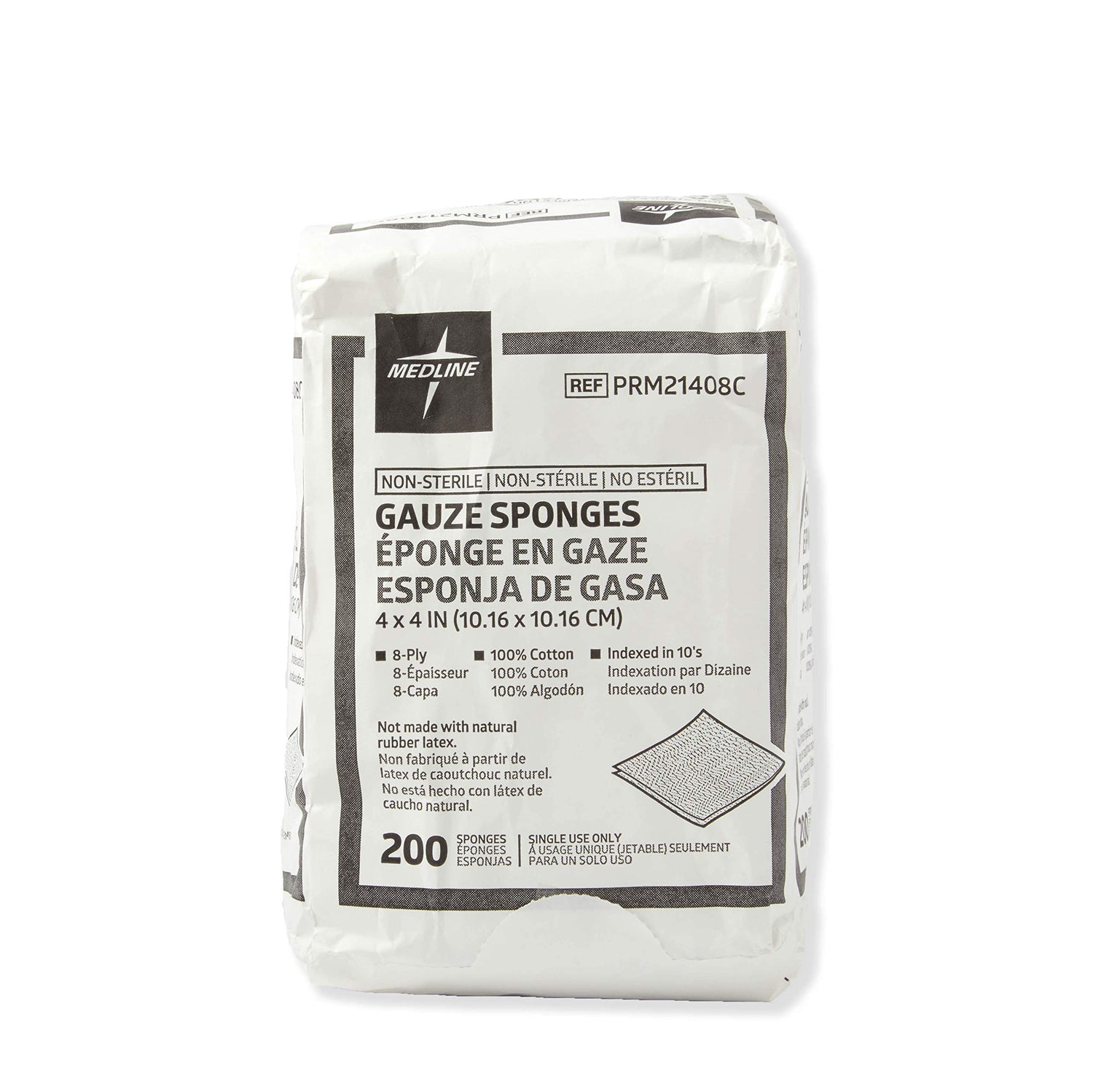 Medline Non-Sterile Cotton Woven Gauze Sponges, 8 Ply, Ideal for Wound Dressing and Cleaning, Case of 4000