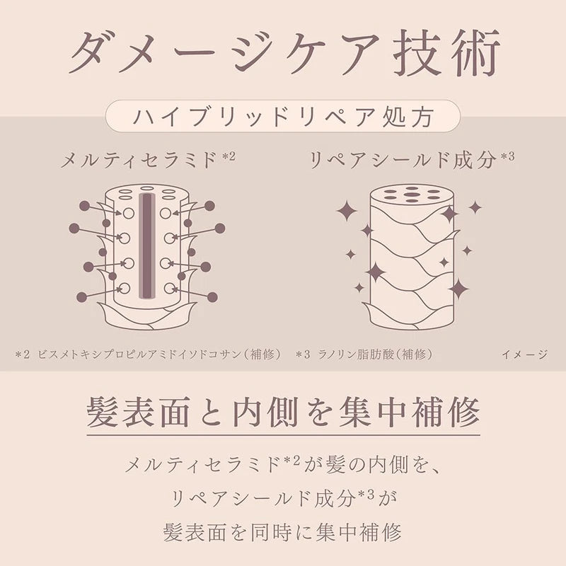 - Hybrid repair formula for simultaneously repairing the surface and interior of your hair