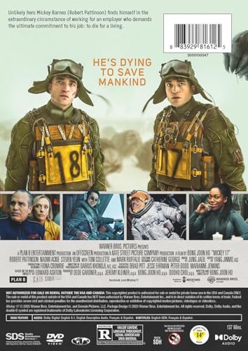 Details: From the Academy Award-winning writer/director of Parasite, Bong Joon Ho, comes his next groundbreaking cinematic experience, Mickey 17. The unlikely hero, Mickey Barnes (Robert Pattinson) has found himself in the extraordinary circumstance of working for an employer who demands the ultimate commitment to the job ... to die, for a living.