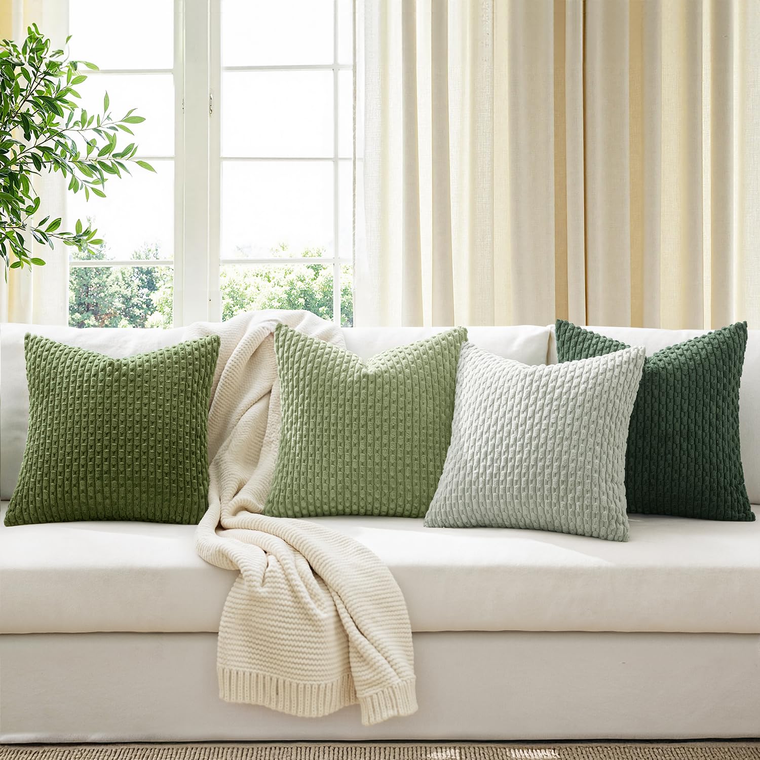 MIULEE Decorative Sage Green Christmas Throw Pillow Covers Soft Couch Set of 4 Boho Striped Cushion Covers Corduroy Pillowcases Farmhouse Home Decor for Couch Bed Sofa Room 18x18 Inch Forest Green