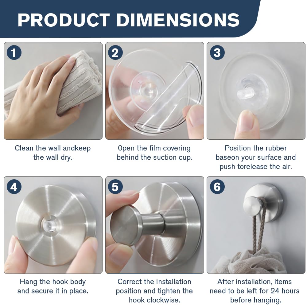 - 【Heavy-Duty & Reusable】Made from rust-resistant stainless steel, these shower suction hooks can hold up to 11 lbs. Use them as over the door hooks for hanging coats or as suction cup hooks for wreaths on glass, then remove and reuse whenever needed
