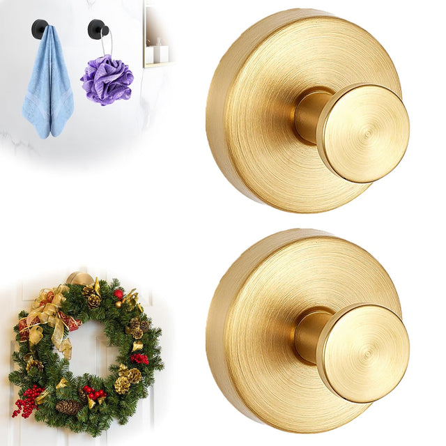 NEKSKA Christmas Wreath Hangers for Front Door, Suction Cup Hooks for Door Wreaths, Suction Cup Hooks for Shower, Bathroom Towels, Windows, Mirrors, and Home Storage Hooks (2PC-Gold)