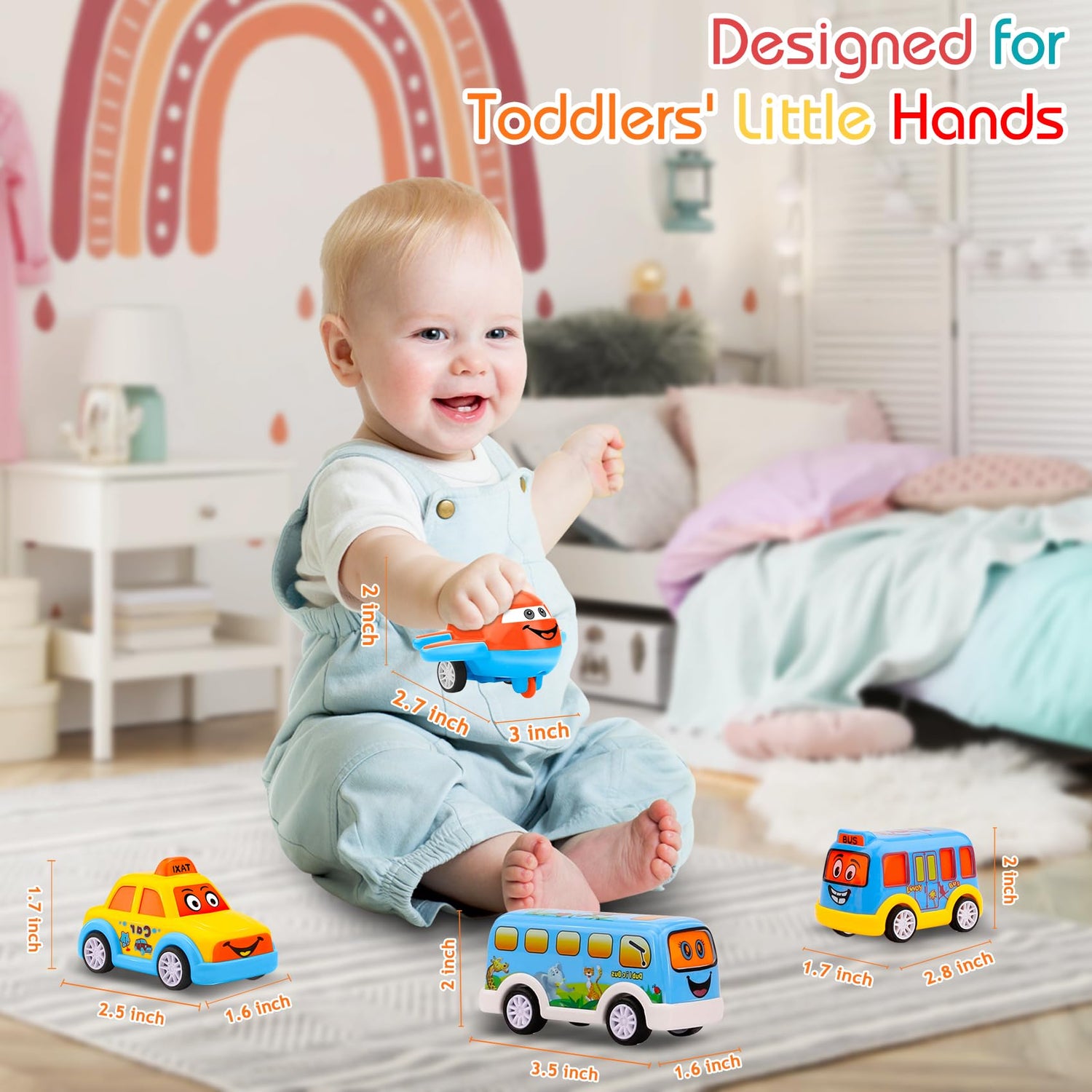 - Safe & Non-Toxic Toddler Toys: Made from child-friendly materials, these toys cars are safe for toddlers 1-3 years old. Smooth edges and durable designs make them perfect for any occasions, ensuring hours of safe, interactive fun.