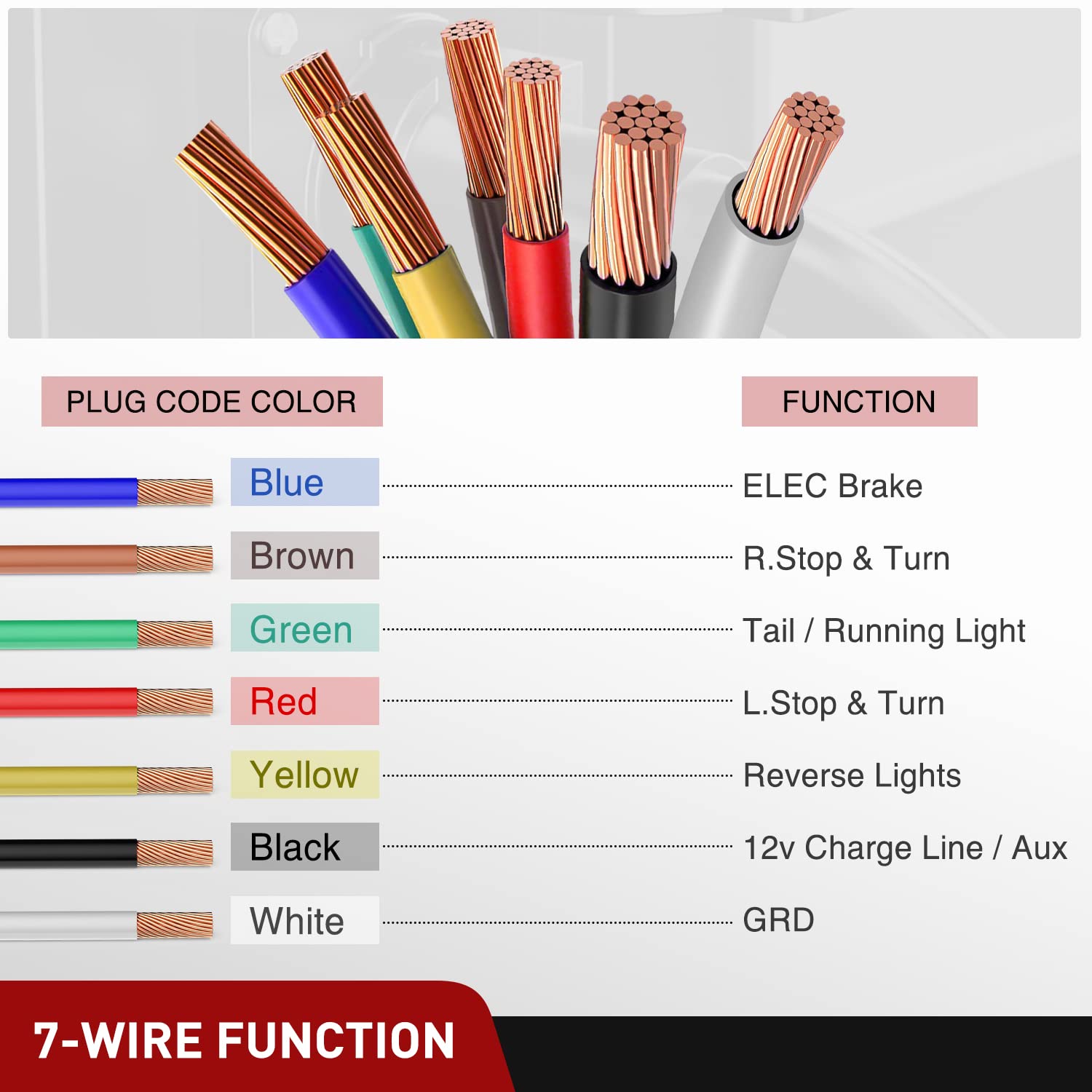 - Convenient Wiring: 7 colours coded wires and coated with durable rubber-like insulation, ready to be installed into a junction box. It has two hooks on either side of the plug for better grip when inserting or unplugging trailer wiring; is Ideal replacement for 7-way RV blade harness, interchangeable with almost any 7-way RV connector.