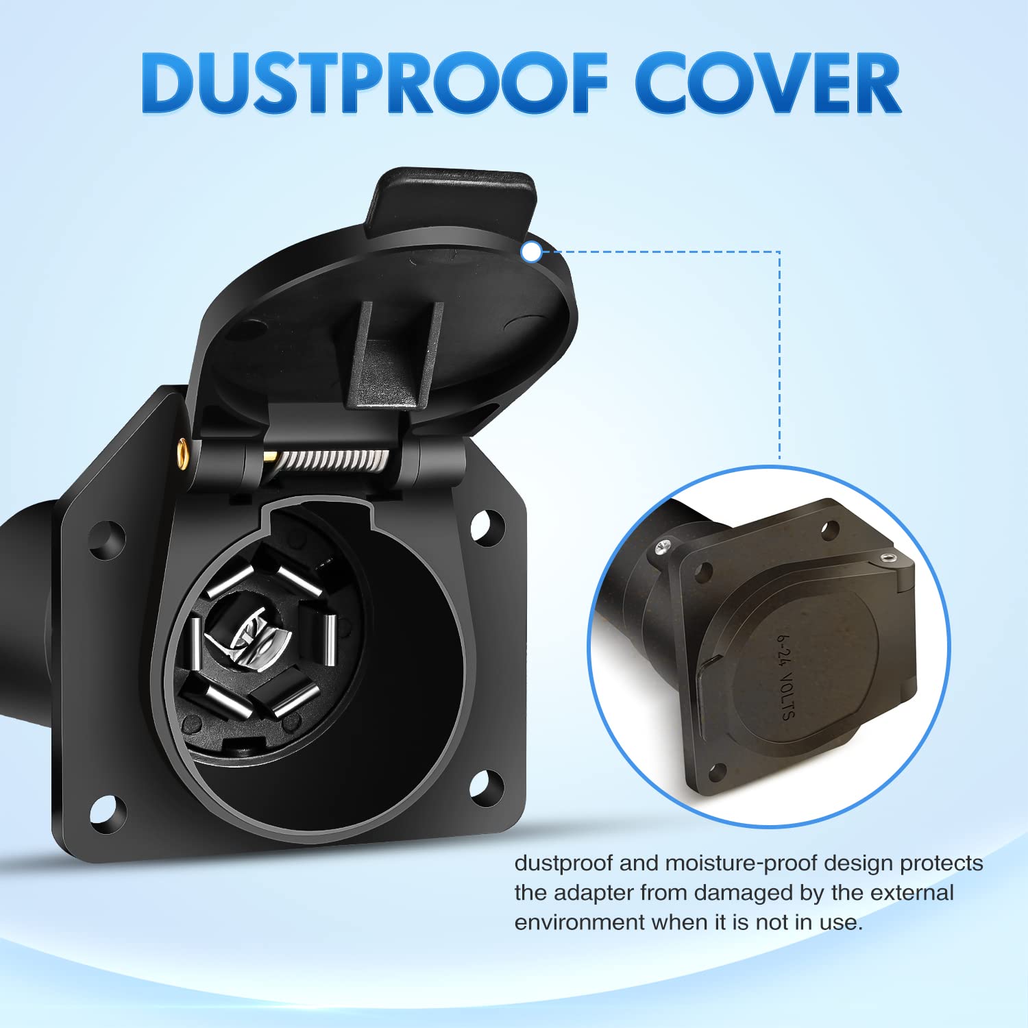 - Plug-N-Play: This trailer connector adapter allows to just plug and go using your existing wiring set up, no more complex splicing wires. 14 inches wire lead between connectors provide flexible installation. Collar with 4 mounting holes lets you mount the socket to your bumper. Built in tabs that lock in using the existing spring loaded cover to secure the plug in place. No more worrying about the plug loosening up during the trip.
