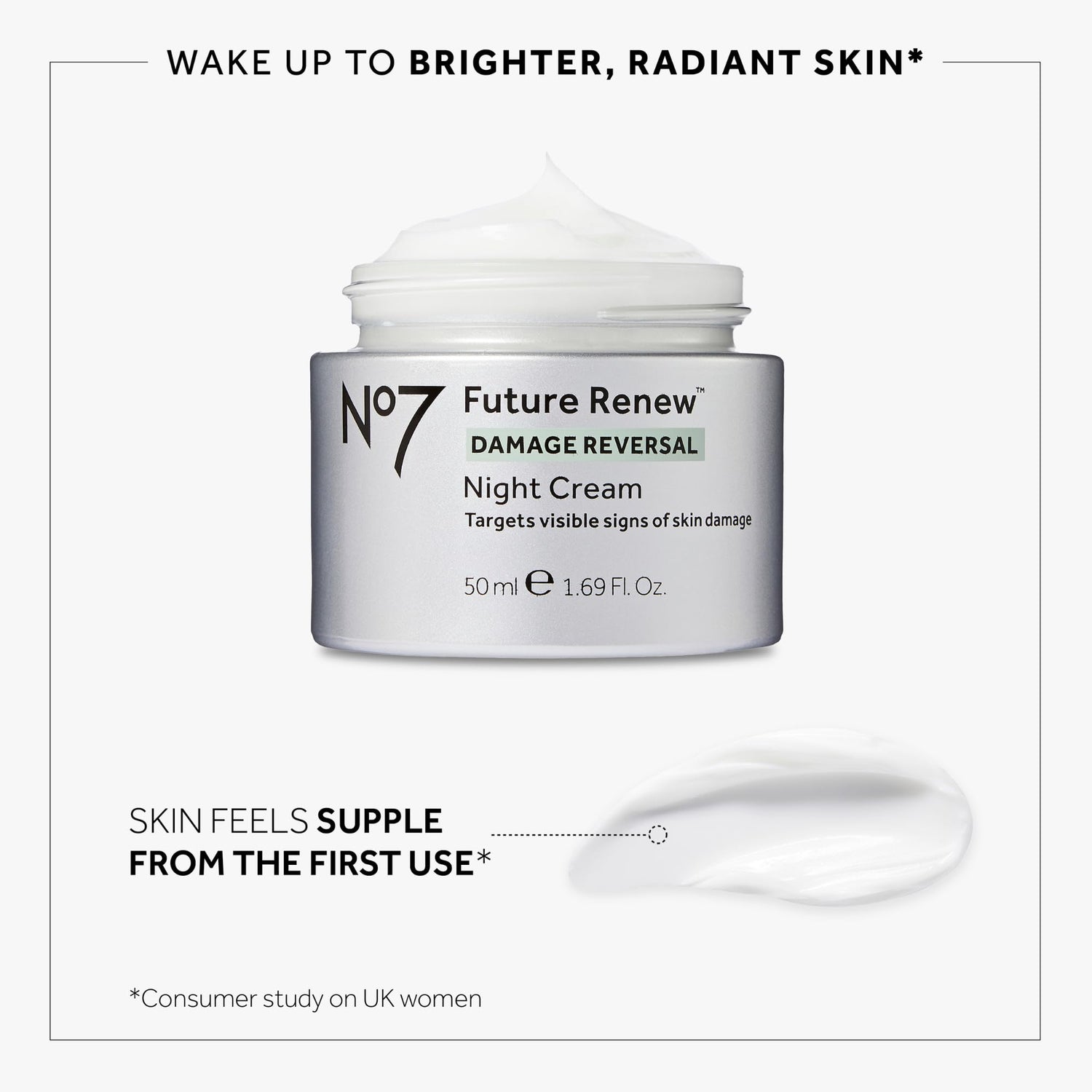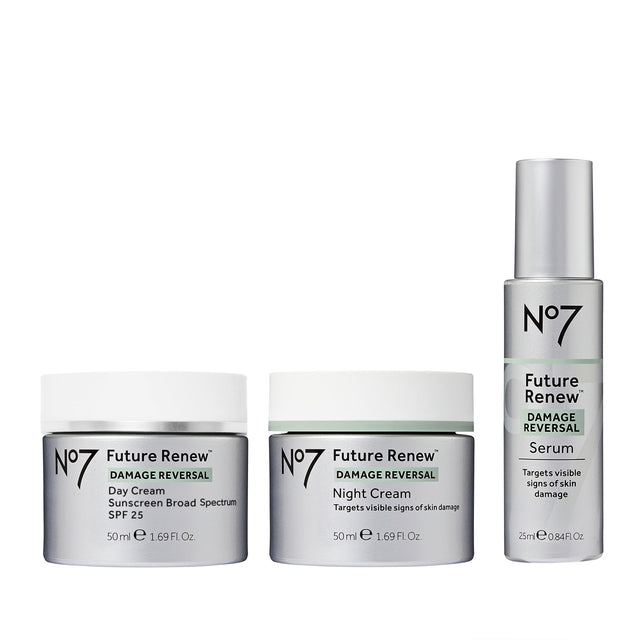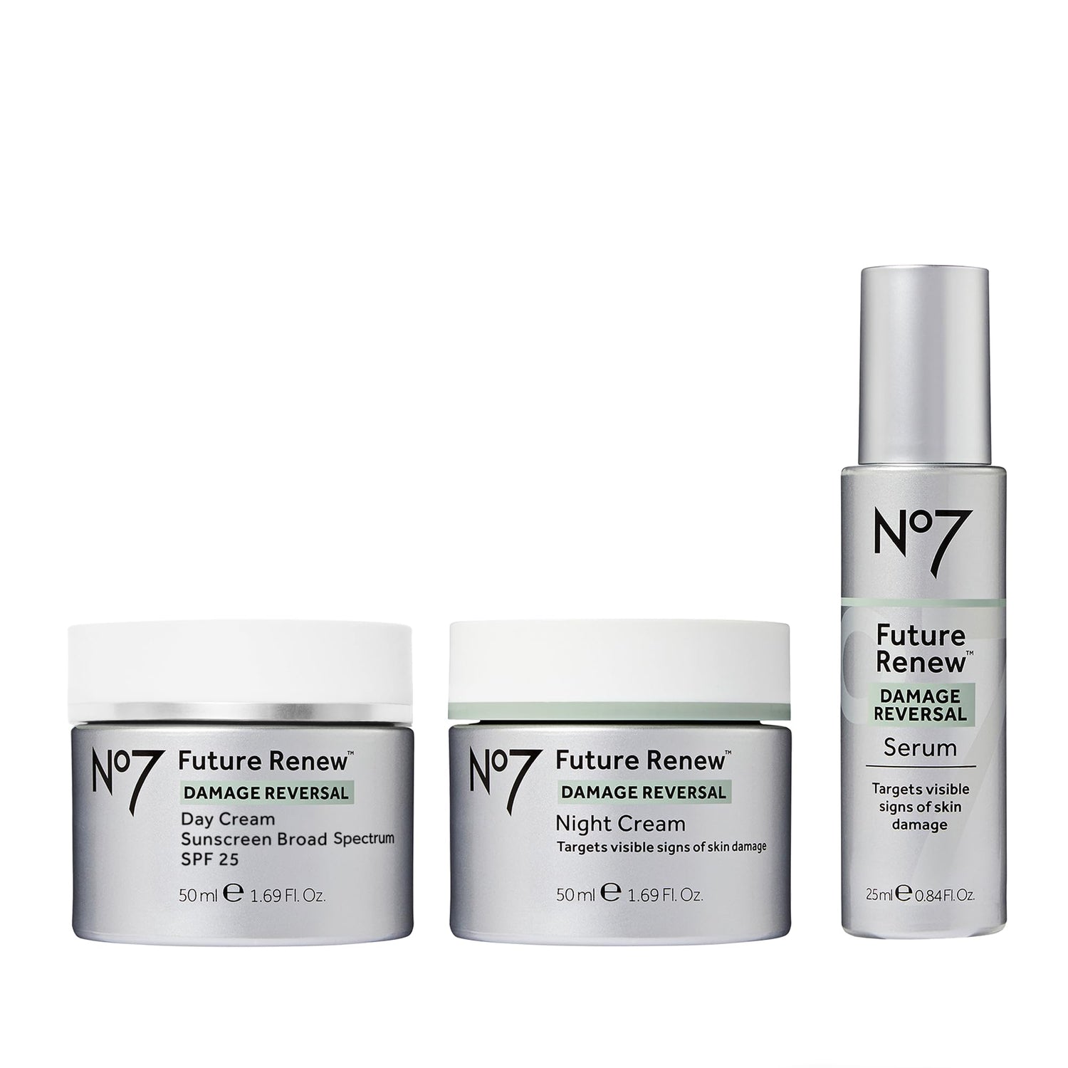 - What's Included - This skin care set features No7's Future Renew Damage Reversal Face Serum, Future Renew Damage Reversal SPF 25 Day Cream & Future Renew Damage Reversal Night Cream, all working in their own ways to reverse visible signs of sun damage.