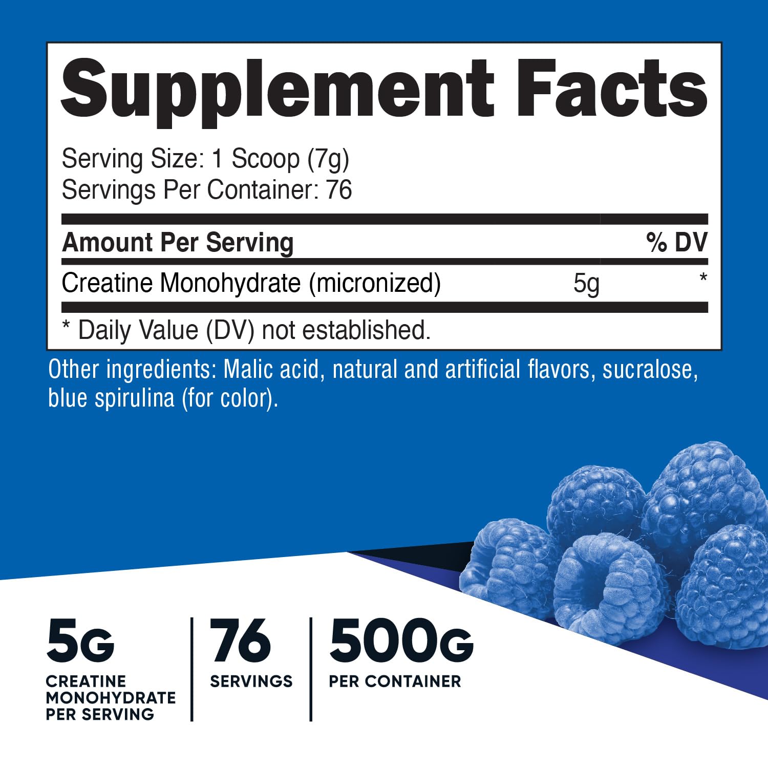 Nutricost Creatine Monohydrate Powder (Blue Raspberry), 500 Grams (1.1 LBS)