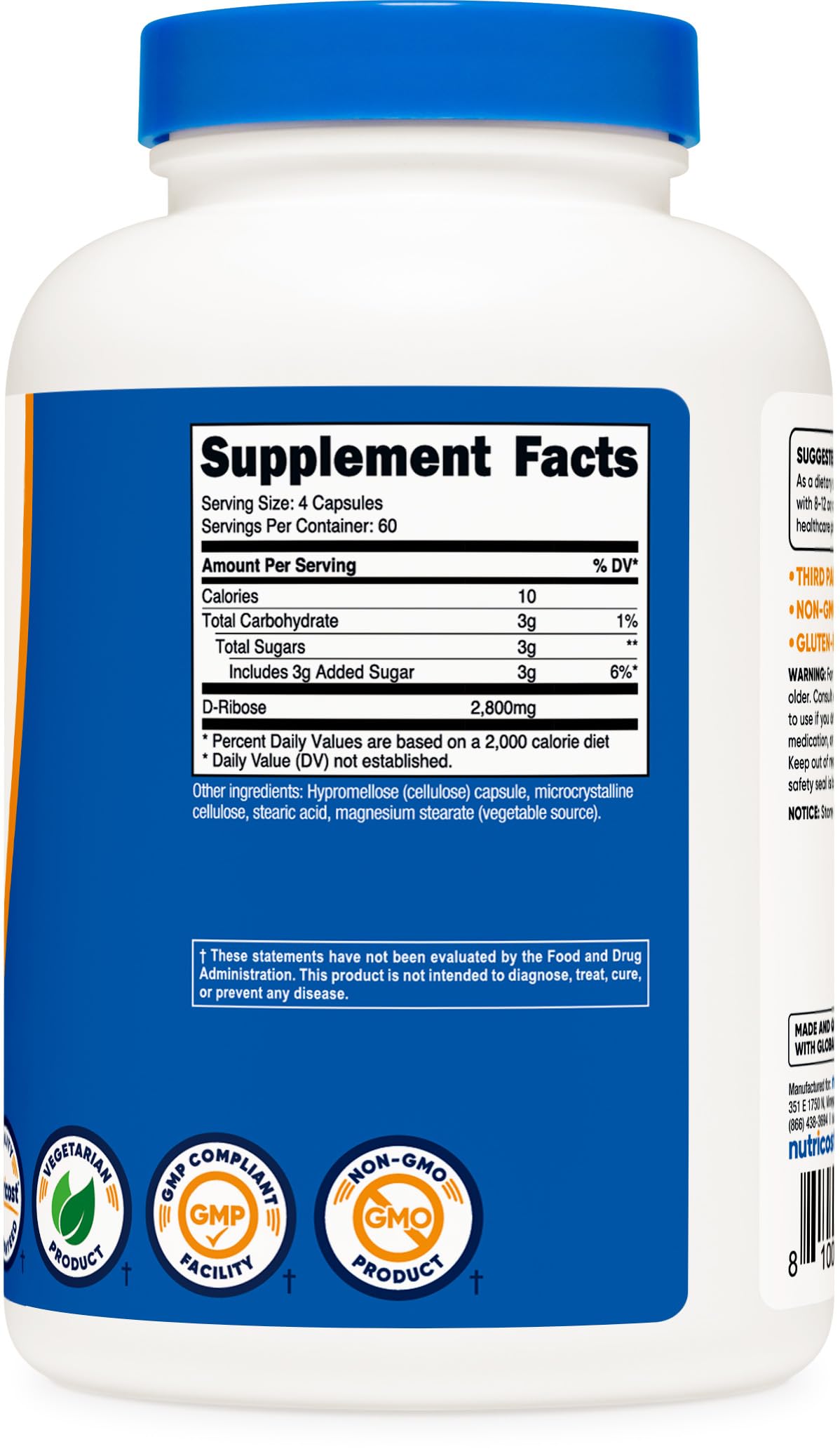 - Nutricost D-Ribose has 2800mg Per Serving