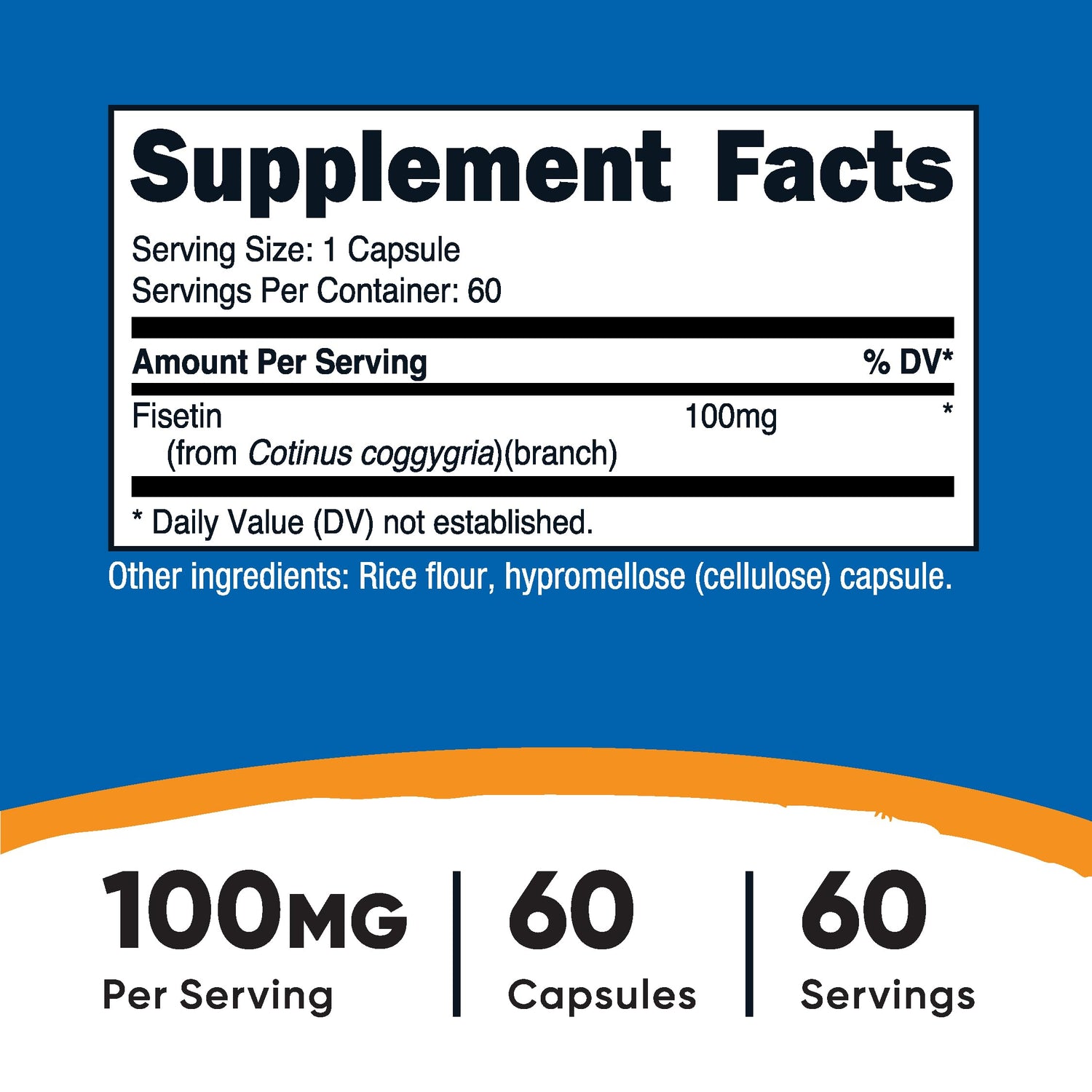 Nutricost Fisetin Capsules 100mg, 60 Capsules - Natural Polyphenol Antioxidant - Non-GMO, Gluten Free, and Vegan Friendly Supplement