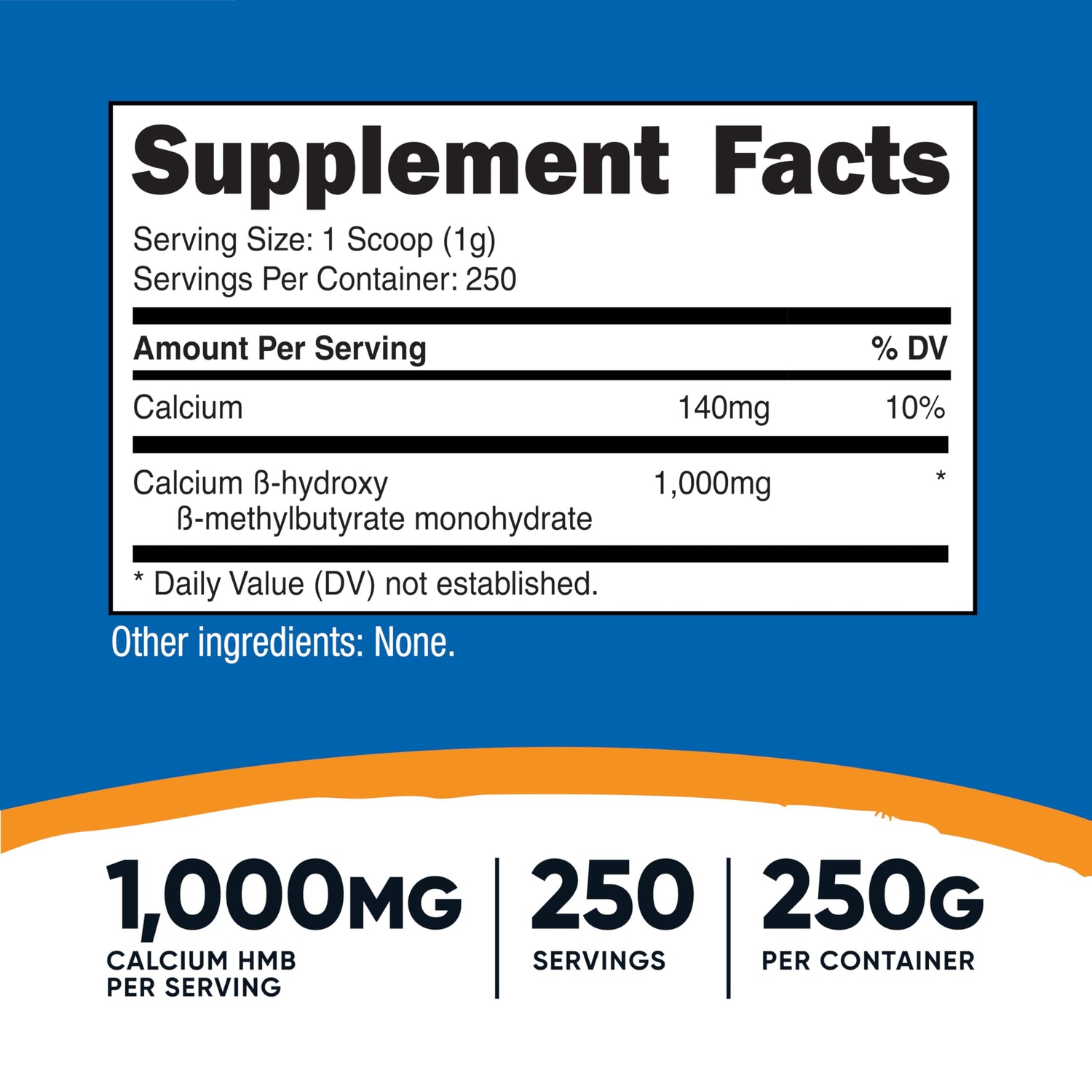 Nutricost HMB Powder (Beta-Hydroxy Beta-Methylbutyrate) 250 Grams - Gluten Free & Non-GMO