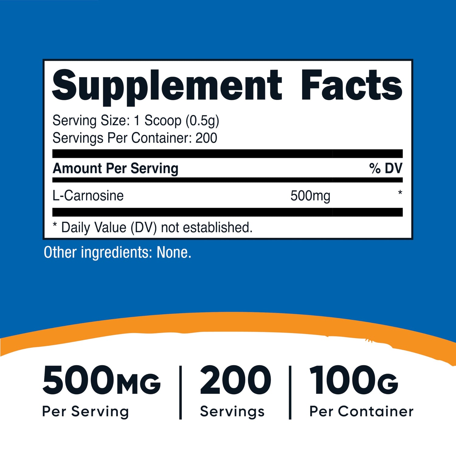 - 500MG of L-Carnosine Per Serving (Scoop Included)