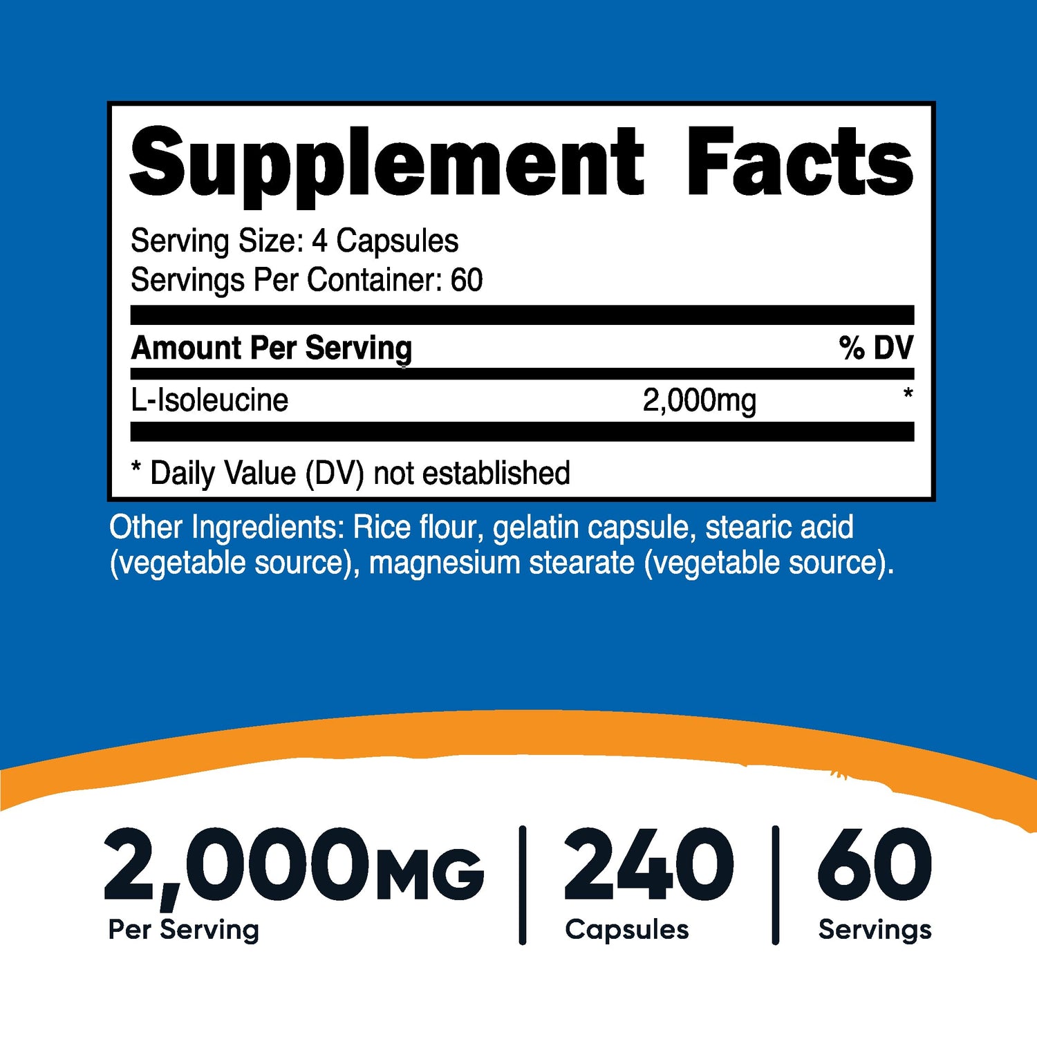 Nutricost L-Isoleucine 2000mg Per Serving, 240 Capsules (60 Servings)