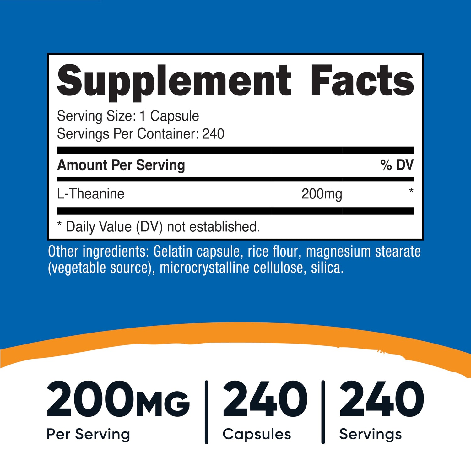 - 240 Capsules of 200mg L-Theanine Per Bottle