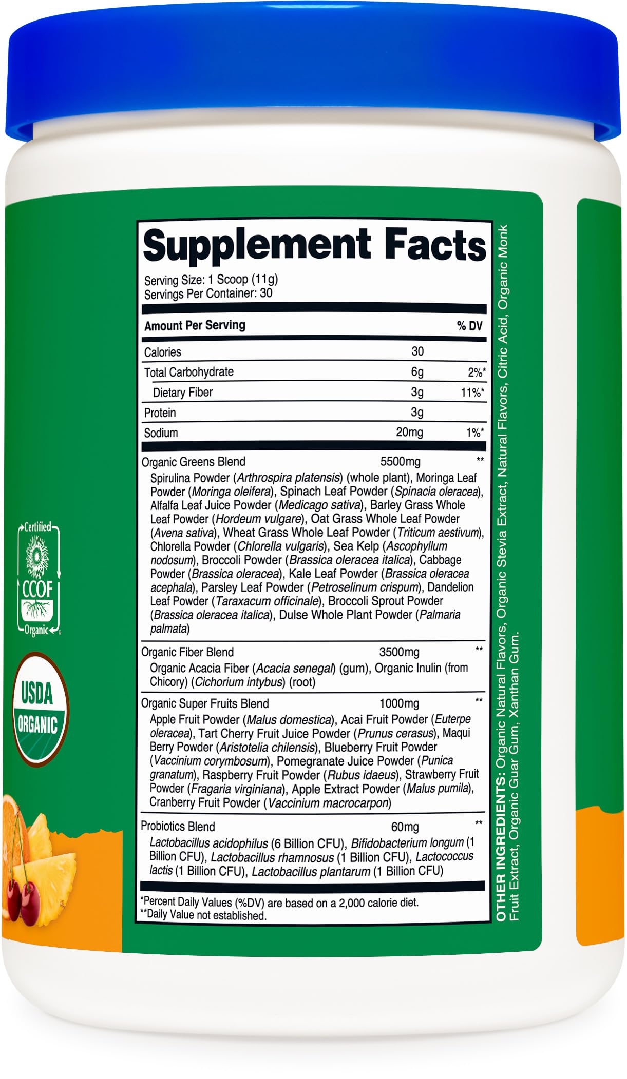 - USDA Organic: Made with certified organic ingredients, ensuring a premium superfood blend without harmful pesticides or chemicals.
