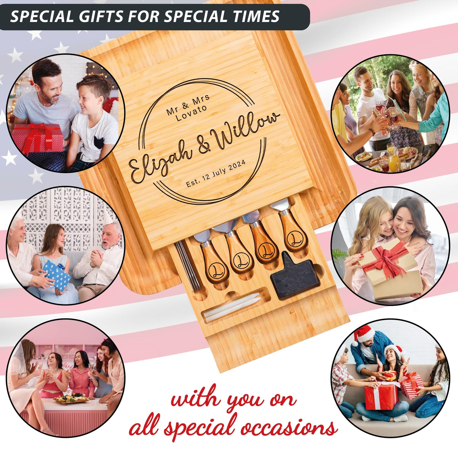 - PERFECT GIFTS: Our cheese and charcuterie board can be a gift for wedding, housewarming, anniversary, bridal showers, engagement, new home, birthday, party and more occasions.