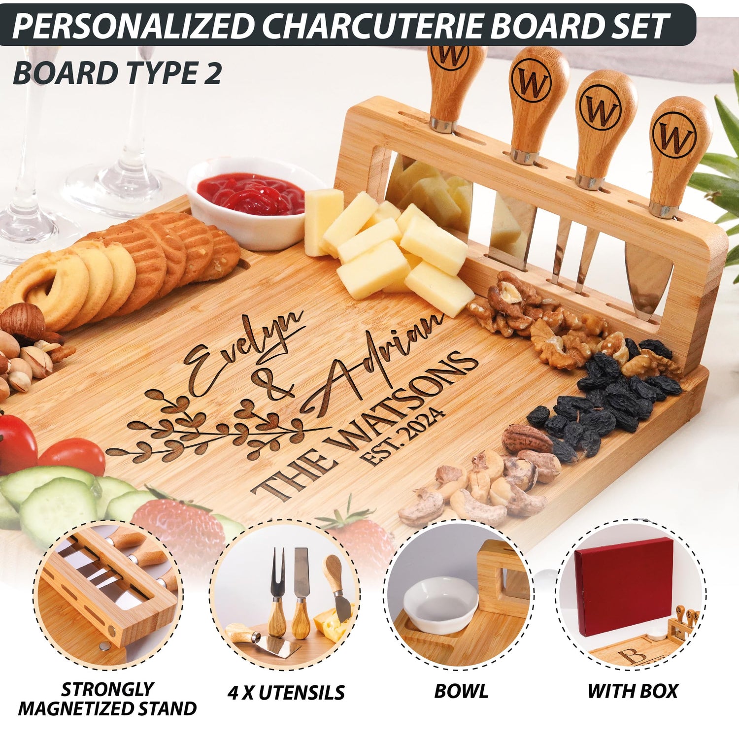 Personalized Charcuterie Board Gifts Set, Custom Large Cheese Board, Charcuterie Board for Wedding, Anniversary, Birthday, Housewarming, Engagement, Party, New Home Gift Couple, Fathers Day, Christmas