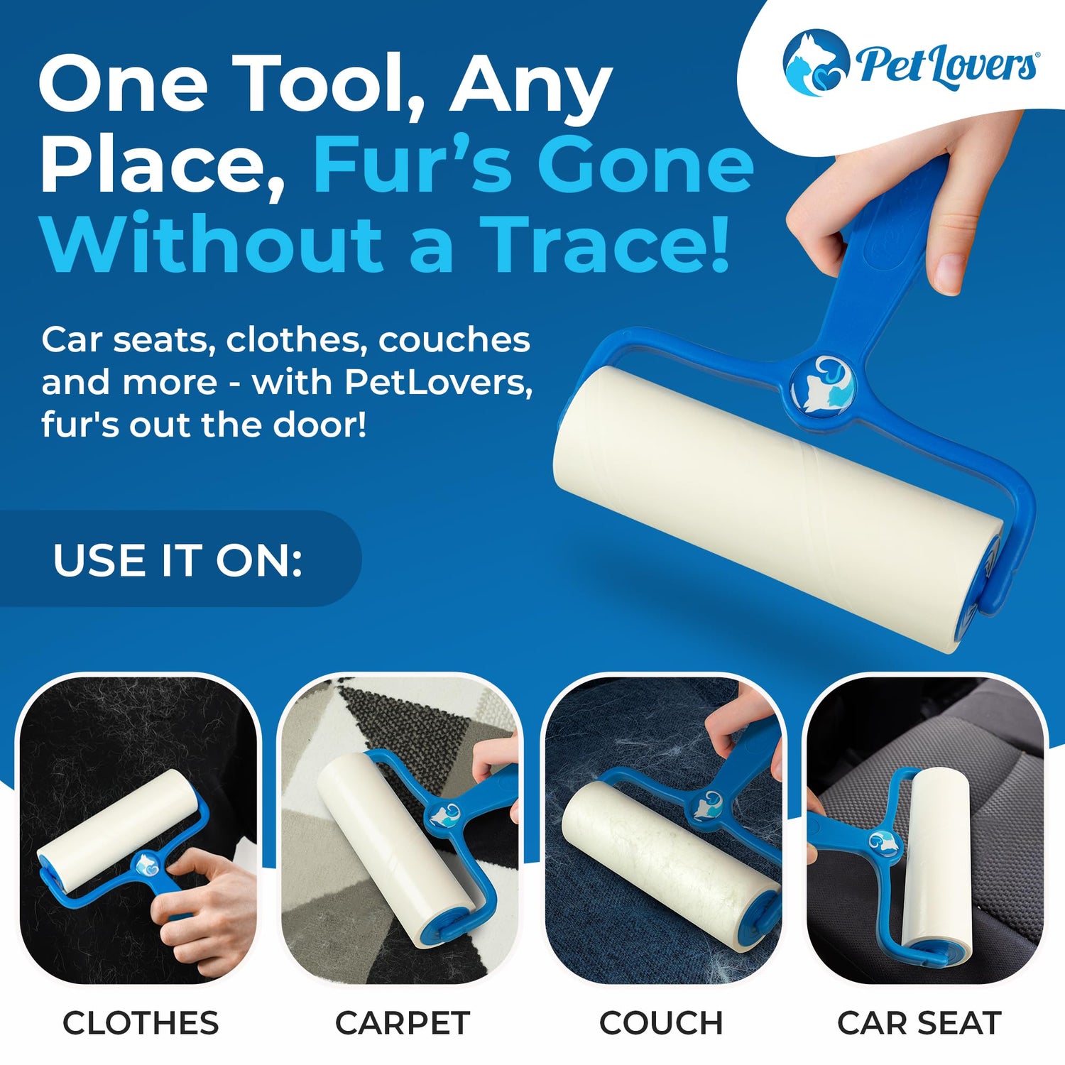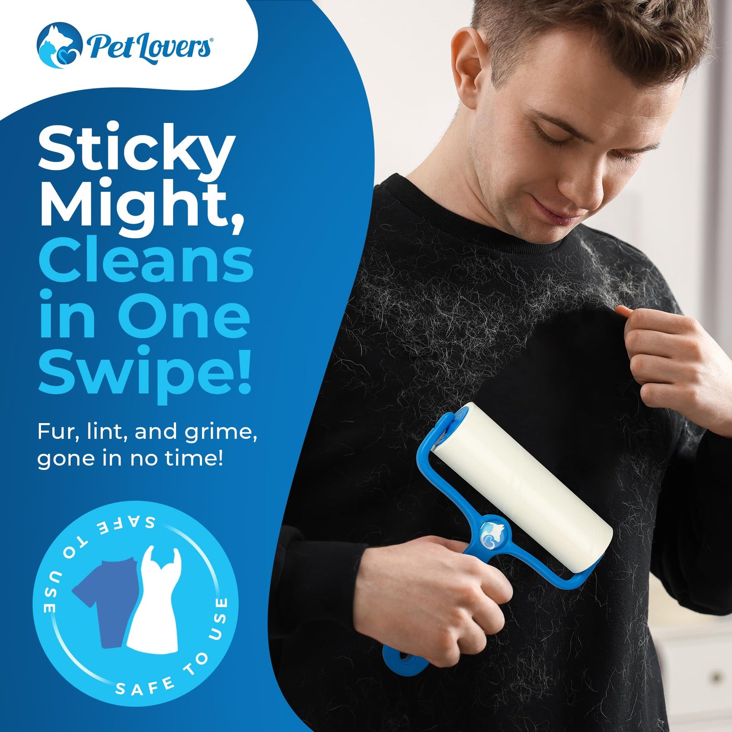 - With PetLovers extra sticky adhesive, your lint roller doubles as a grooming tool that noticeably removes more hair, dust, and lint from your pets, furniture, clothing, and carpet.