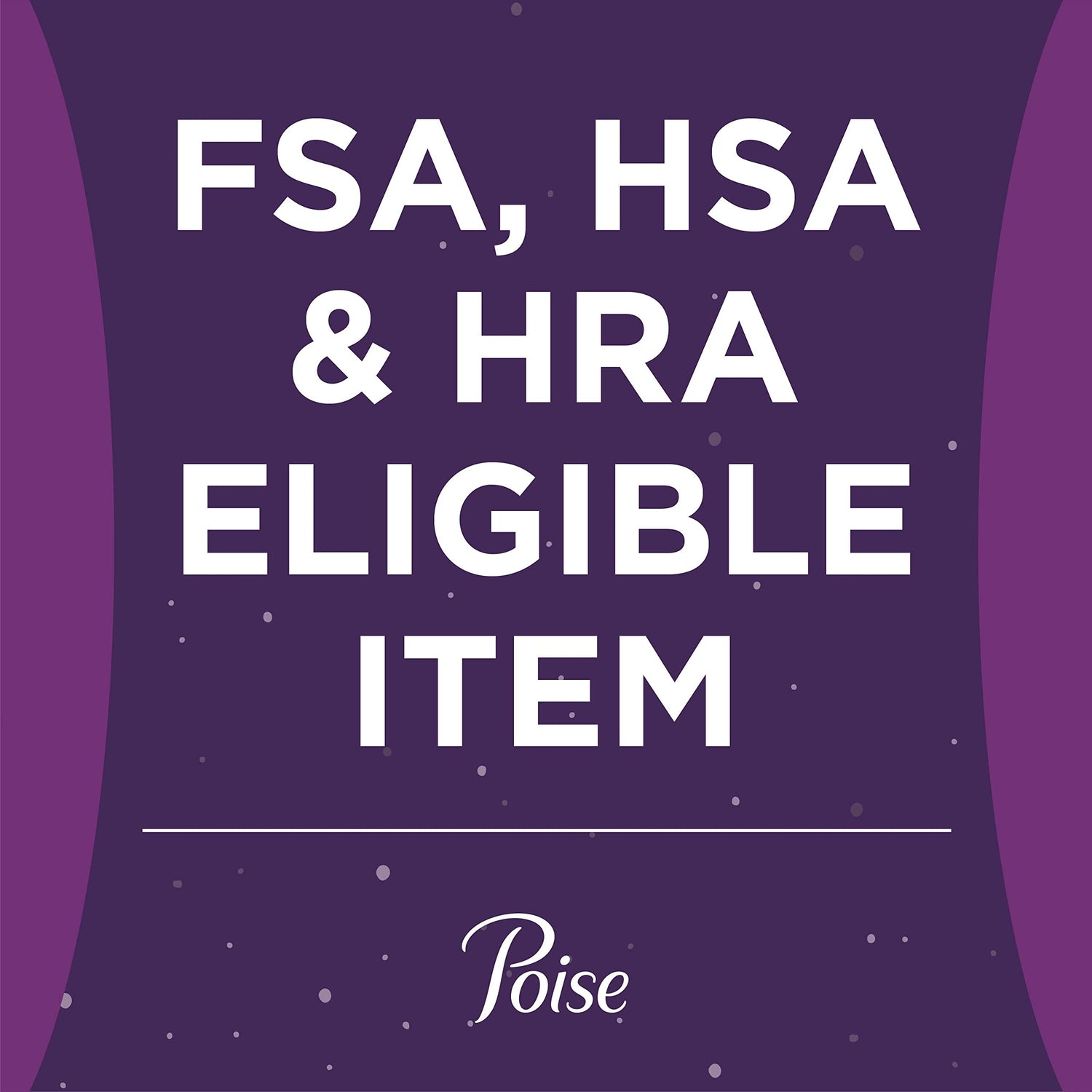 - Poise adult incontinence products are HSA/FSA-eligible in the US (check with your provider for coverage details); product and packaging may vary