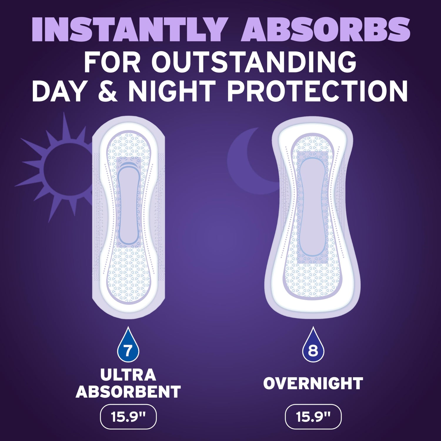 - THE BEST NIGHTTIME PROTECTION*: Poise overnight pads for women instantly absorb and rapidly lock away more wetness than the leading period pad for amazing dryness (*vs national brands pads)